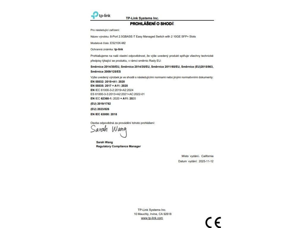 Odkaz na web výrobce: https://www.omadanetworks.com/cz/business-networking/omada-switch-agile/es210x-m2/#specifications