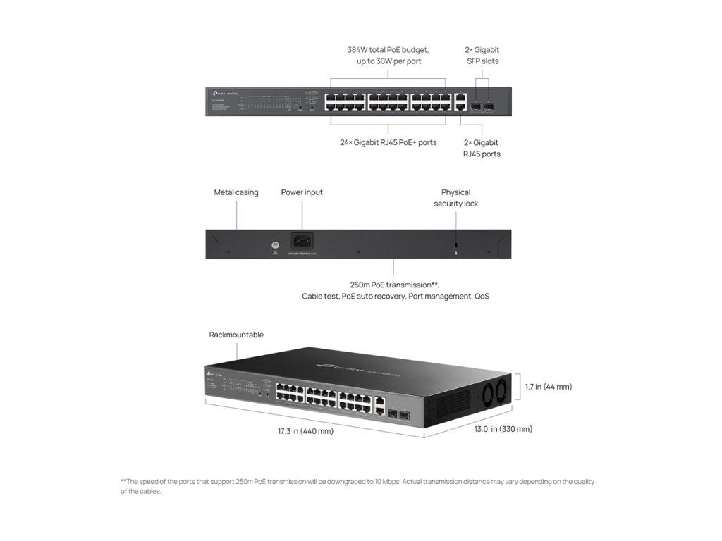 profesionální 28portový gigabitový PoE+ switch s pokročilou cloudovou správou Omada pro dohledové sítě a firemní prostředí