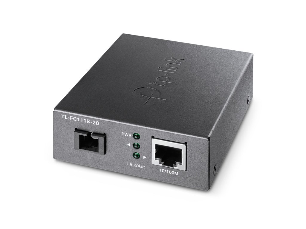 TP-Link TL-FC111B-20 10/100 Mbps WDM Media Converter. TL-FC111B-20 je převodník médií 100M, poskytující port 100M RJ-45 a port 100M SC vlákno, které mohou převádět mezi elektrickými a optickými signály. Přenos dat na dlouhé vzdálenosti optickým vláknem lze aplikovat na komerční scénáře, jako je monitorování zabezpečení.TL-FC111B-20 využívá technologii WDM (wavelength division multiplexing), která pomáhá odesílat a přijímat data na vzdálenost až 20 km pouze s jediným vláknem, což zákazníkům ušetří polovinu nákladů na zavedení kabelu. TL-FC111B-20 přenáší data na vlnové délce 1550 nm a přijímá data při vlnové délce 1310 nm na optickém vlákně. Proto by koncové zařízení použité ve spojení s TL-FC111B-20 mělo odesílat data na vlnové délce 1310 nm a přijímat data na vlnové délce 1550 nm.