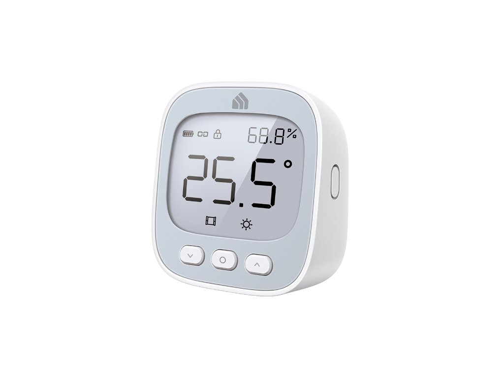 * Displej zobrazuje aktuální teplotu, stav topení a relativní vlhkost s vysokou přesností (±0,54 oF, ±3 % RH)