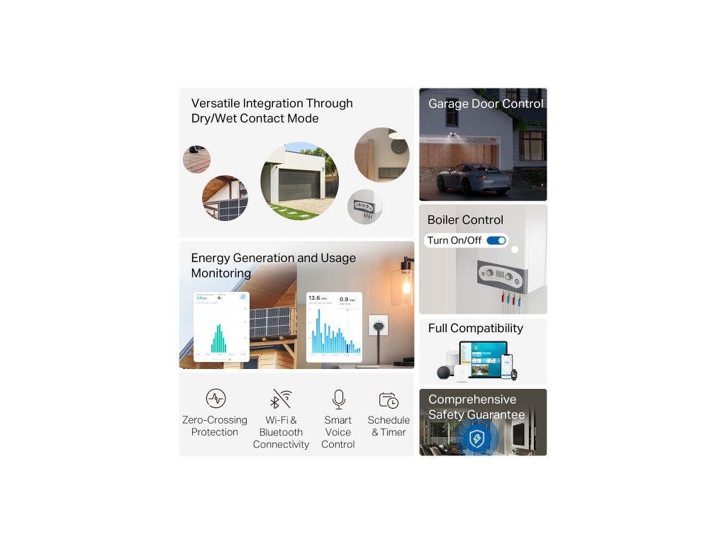 Tapo S110E chytrý spínač pro Váš domov.Ovládejte světla, zásuvky, garážová vrata i podlahové vytápění, sledujte spotřebu energie a využijte hlasové ovládání.
