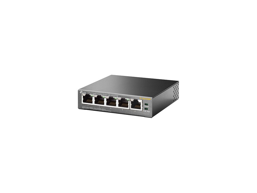 Neřízený switch TL-SG1005P je vybaven pěti porty s rychlostmi přenosu 10/100/1000 Mb/s, který nevyžaduje žádnou konfiguraci a nabízí 4 porty s napájením PoE (Power over Ethernet). Dokáže automaticky detekovat a napájet jakákoli zařízení PD (Powered Devices), která splňují protokol IEEE 802.3af. V tomto provedení je elektrické napájení přenášeno společně s daty přes stejný kabel, což vám umožňuje rozšířit vaši síť i do míst, kde nejsou elektrické přípojky nebo zásuvky, ale kde chcete použít zařízení, jako jsou přístupové body, IP kamery nebo IP telefony, atd.