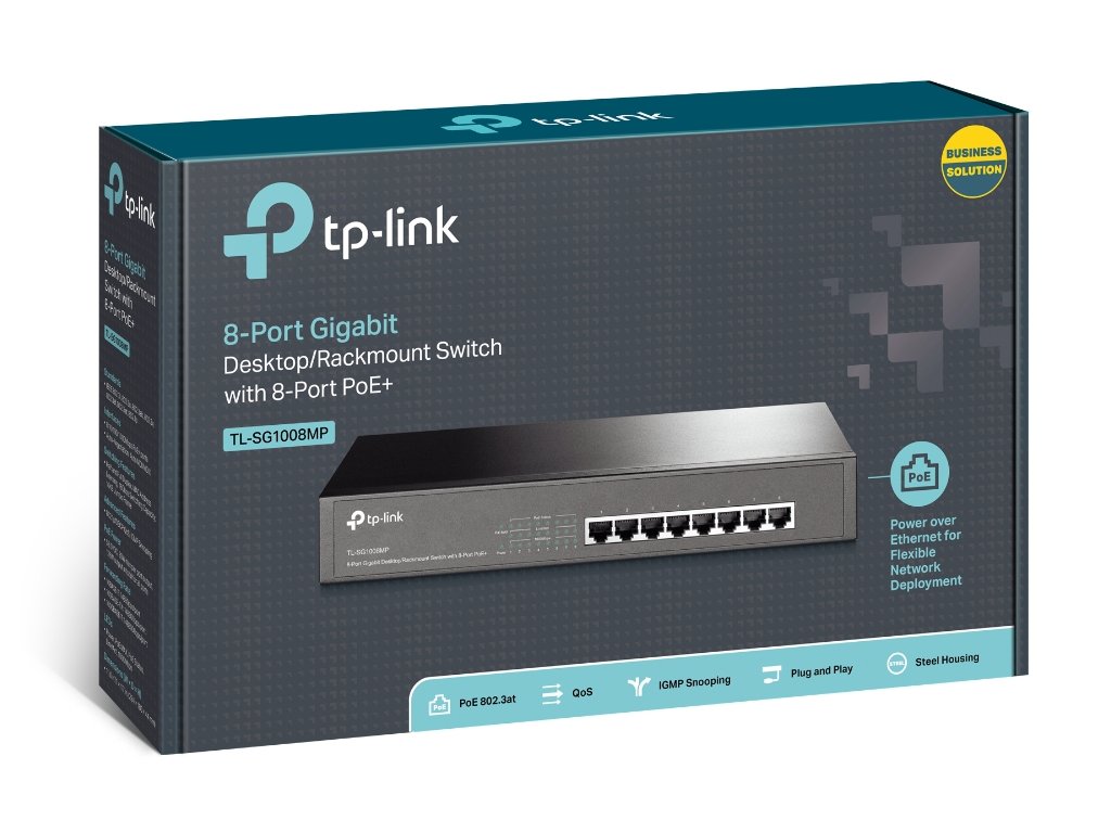 TL-SG1008MP je 8-portový Gigabit Desktop / Rack montovatelný switch se všemi 8 porty podporující standard PoE +. Poskytuje jednoduchý způsob, jak rozšířit kabelovou síť přenesením výkonu a dat přes jeden ethernetový kabel. S celkovou spotrebou 126W, a až 30W na port, může TL-SG1008MP napájet více vysoce výkonných zařízení, jako jsou bezdrátové přístupové body (AP), IP kamery nebo IP telefony. Díky inovativním energeticky účinným technologiím může TL-SG1008MP ušetřit až 75% spotřeby elektrické energie, což z něj činí ekologické řešení pro vaši obchodní síť.