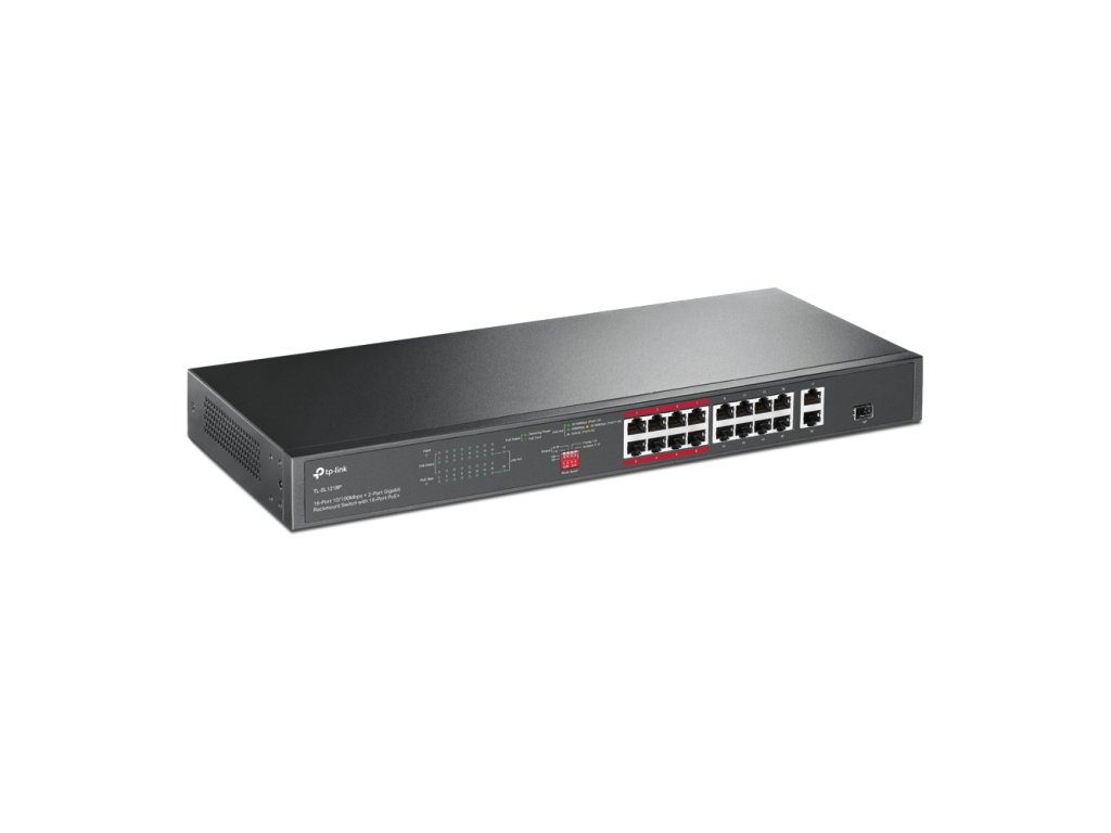 TP-Link TL-SL1218P 16-Port 10/100Mbps + 2-Port Gigabit Rackmount Switch s 16-Port PoE+.Klíčové vlastnosti