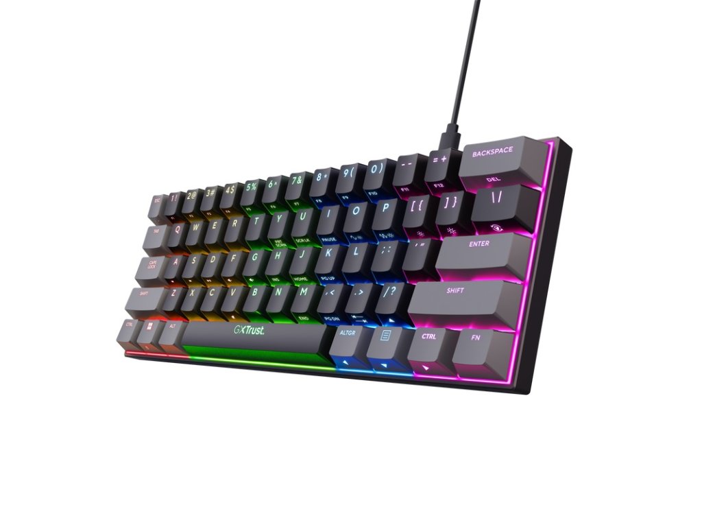 * kompaktní 60% uspořádání klávesnice zaručí více prostoru pro pohyby myší a více místa na stole