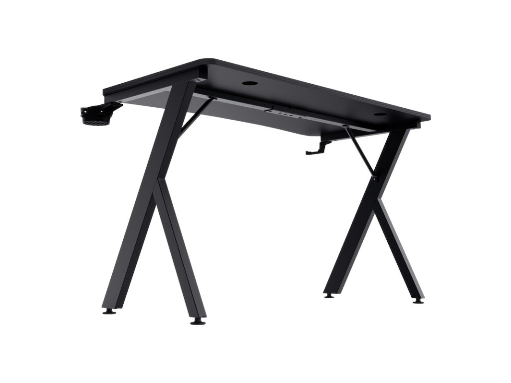 Odolný a robustní herní stůl pro optimální herní zábavuStůl o rozměrech 120 × 60 × 76 cm s dostatkem místa pro monitor, klávesnici, myš a další prvky. Díky přiloženému držáku na nápoje a háčku na náhlavní soupravu máte vše potřebné na dosah. Uschovejte kabely mimo dohled a dosah díky praktickým otvorům pro vedení kabelů. Odolné kovové nohy se šroubovacími vyrovnávacími patkami zajišťují stabilní a pevné usazení. Pro optimální trasování je nutná podložka pod myš