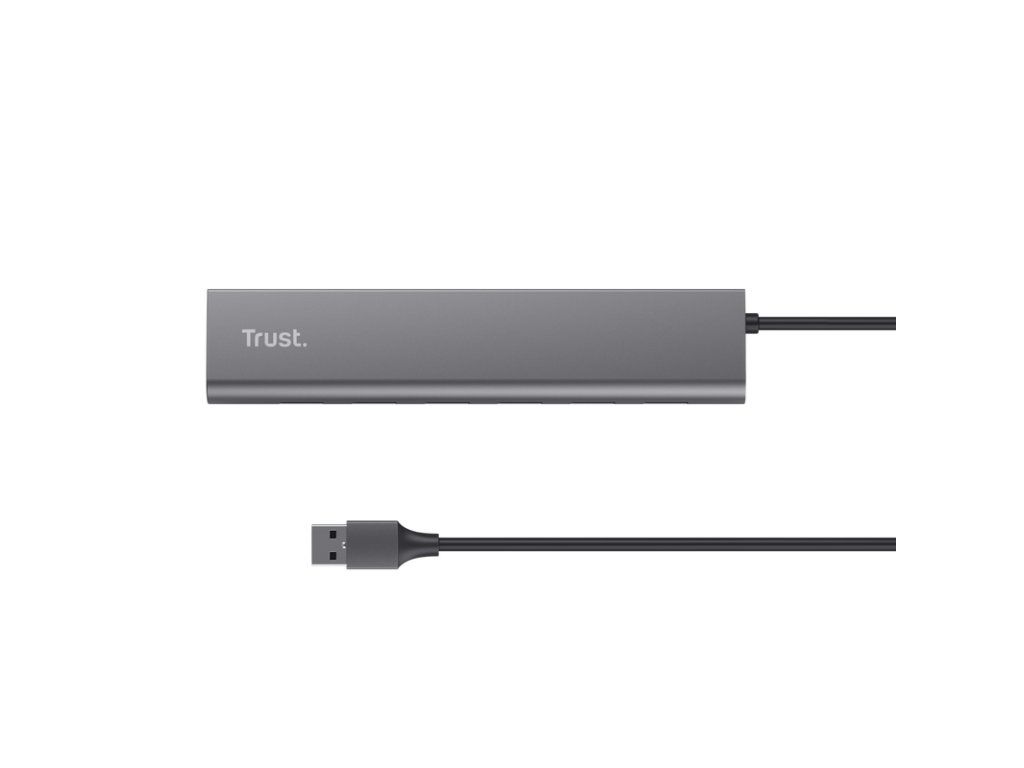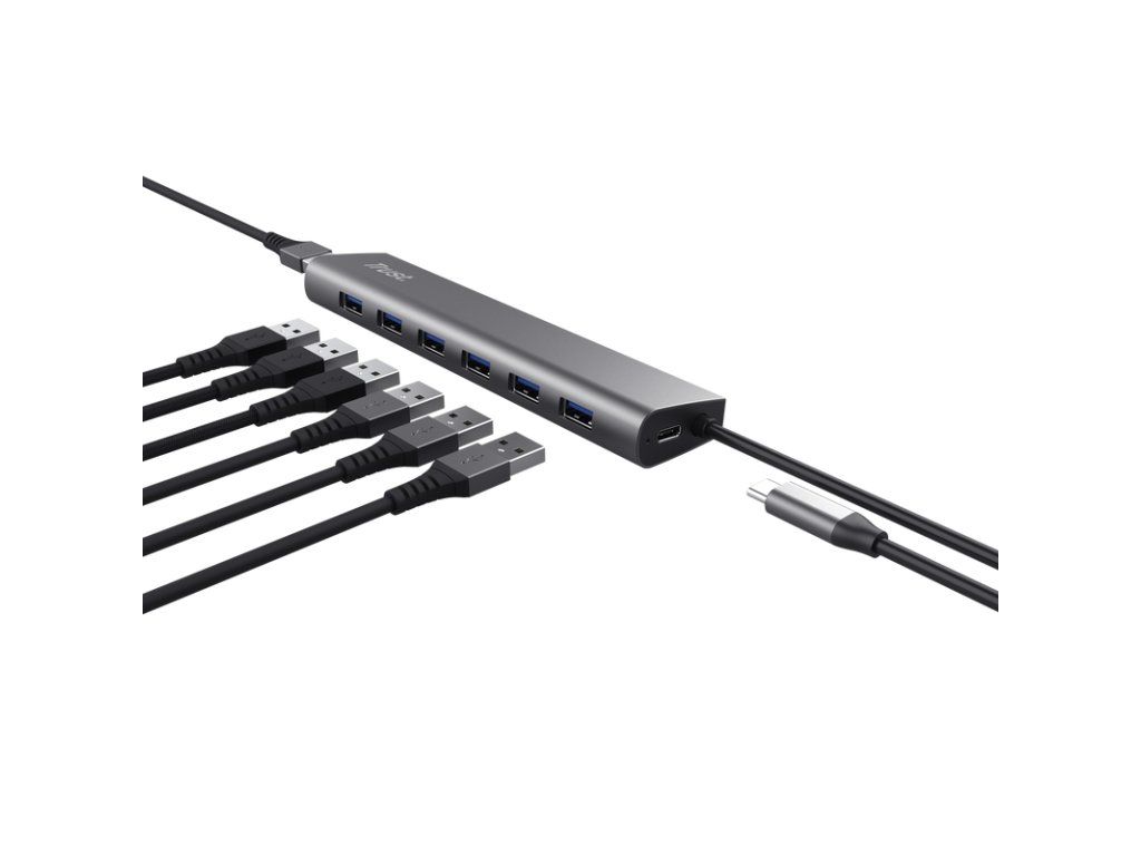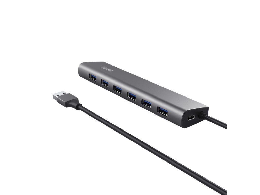 TRUST Halyx 7 Port USB 3.2 Gen1 HubStylový hliníkový rozbočovač USB přidává do počítače 7 dalších portů USB-A s rychlostí 5 Gb/s