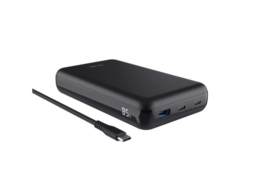 Trust Laro 100W powerbanka k notebookuVelkokapacitní 100W powerbanka k notebooku pro rychlé nabíjení notebooku nebo počítače MacBook s USB-C na cestách