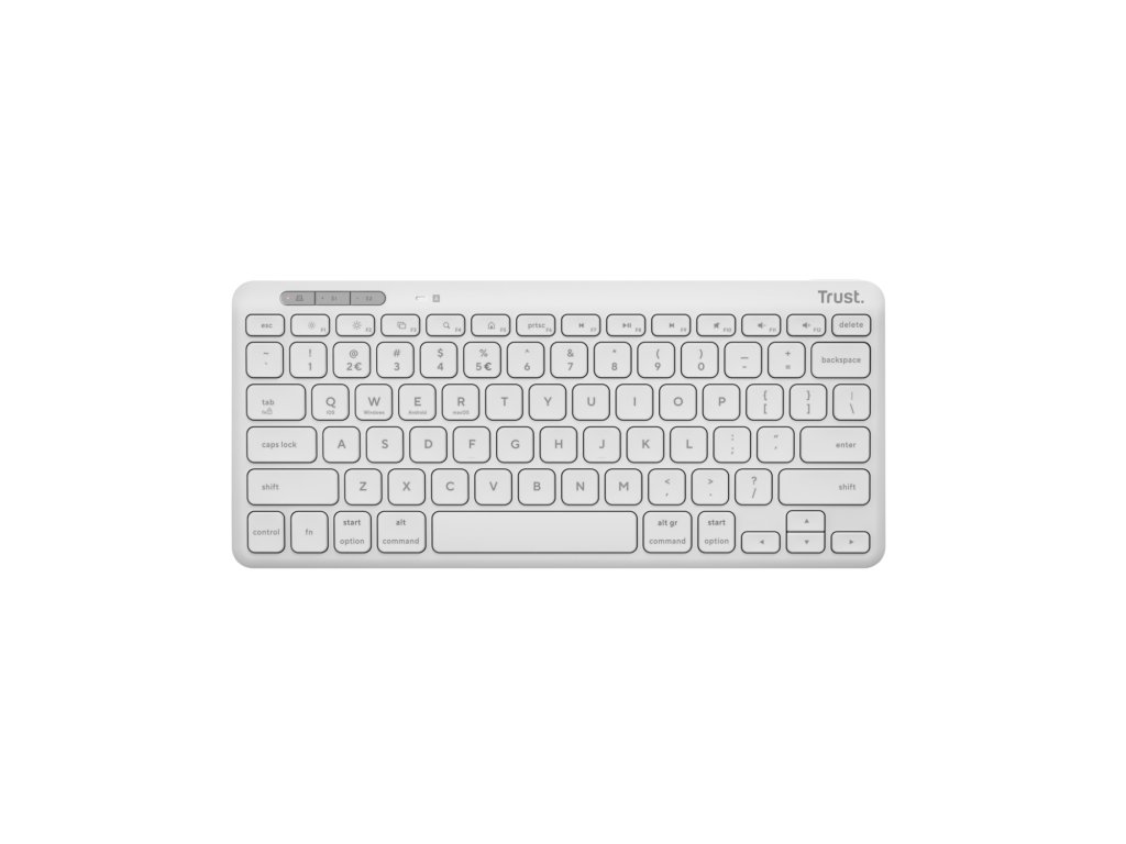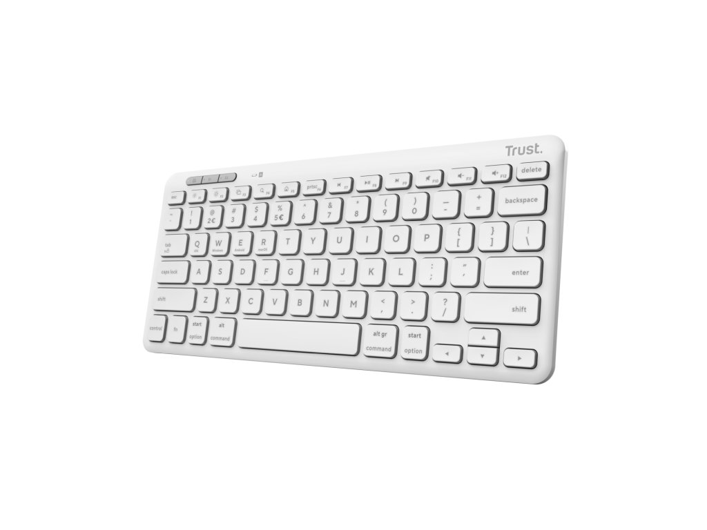 TRUST Lyra Kompaktní bezdrátová klávesnice bíláKompaktní, vícefunkční bezdrátová klávesnice umožňující snadné a pohodlné připojení; vyrobena z recyklovaných materiálů.