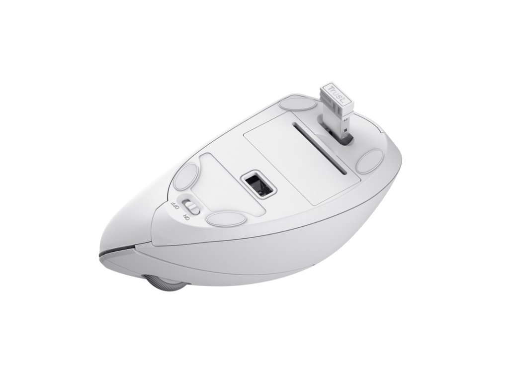 Trust Verto/Vertikální/Optická/Pro praváky/1 600 DPI/Bezdrátová USB/Bílá