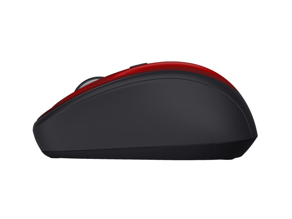 TRUST Yvi+ Tichá bezdrátová myš červenáKompaktní bezdrátová myš s tichými tlačítky; vyrobena z 83 % z recyklovaných materiálů