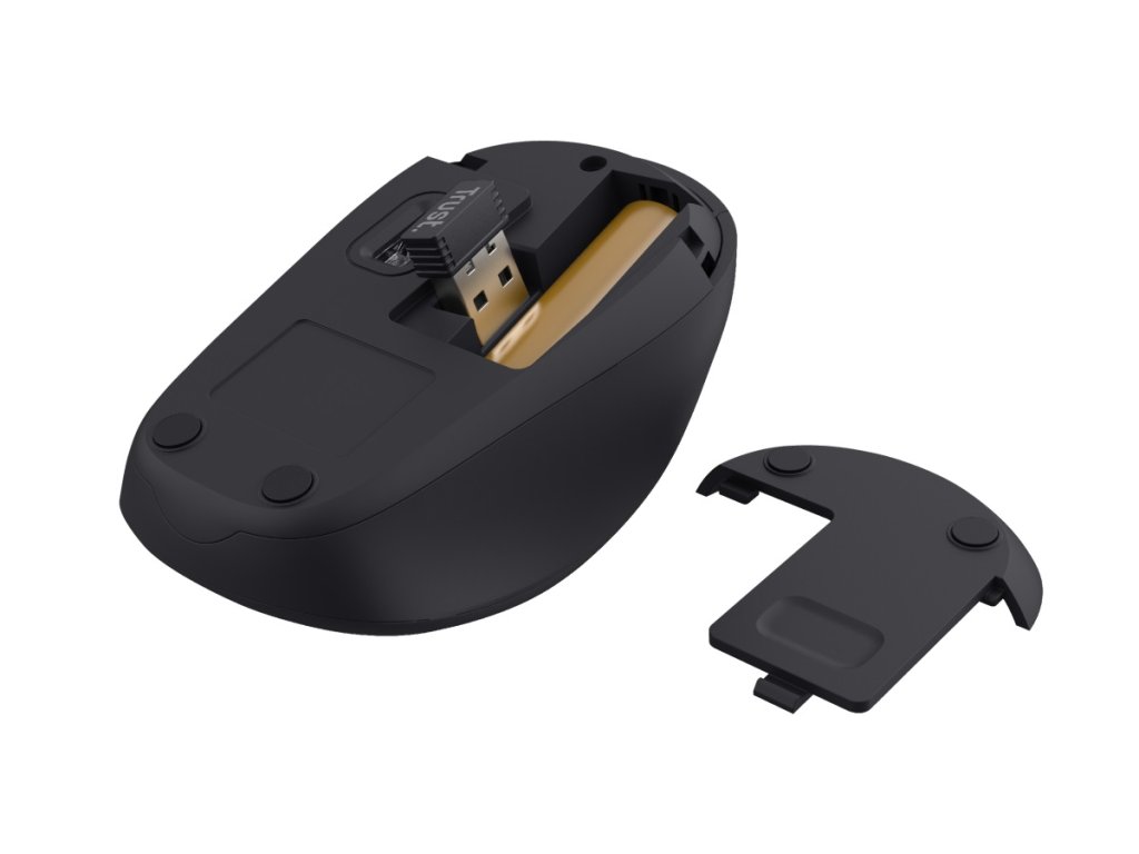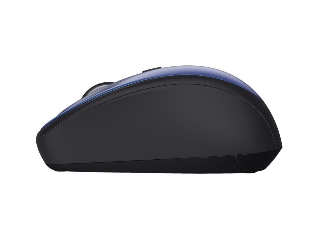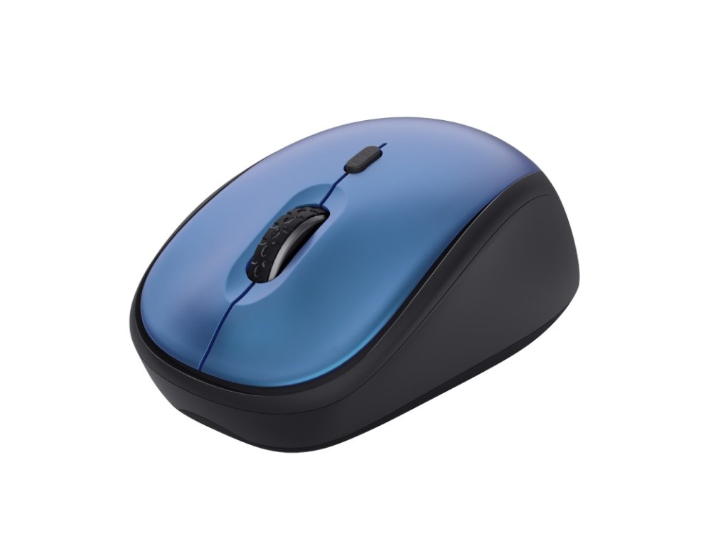 TRUST Yvi+ Tichá bezdrátová myš modráKompaktní bezdrátová myš s tichými tlačítky; vyrobena z 83 % z recyklovaných materiálů