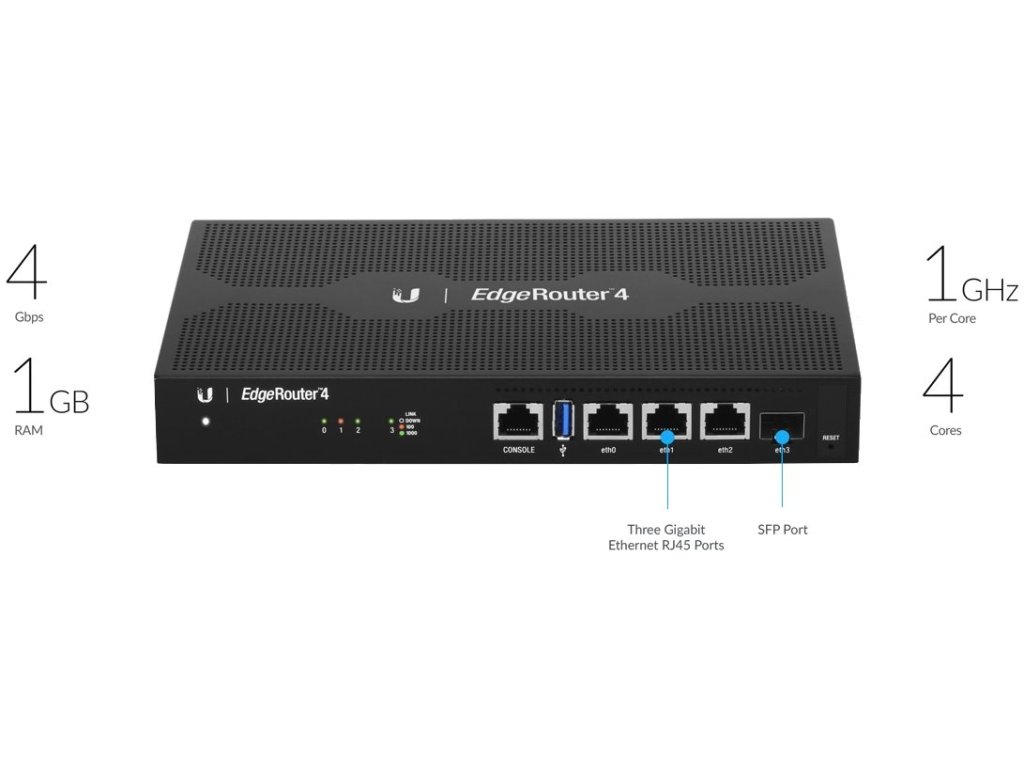EdgeRouter 4 je vhodný všude tam, kde je nutné směrovat velké množství dat, do malých i středních firem a všude, kde je kladen důraz na bezpečnost sítě.