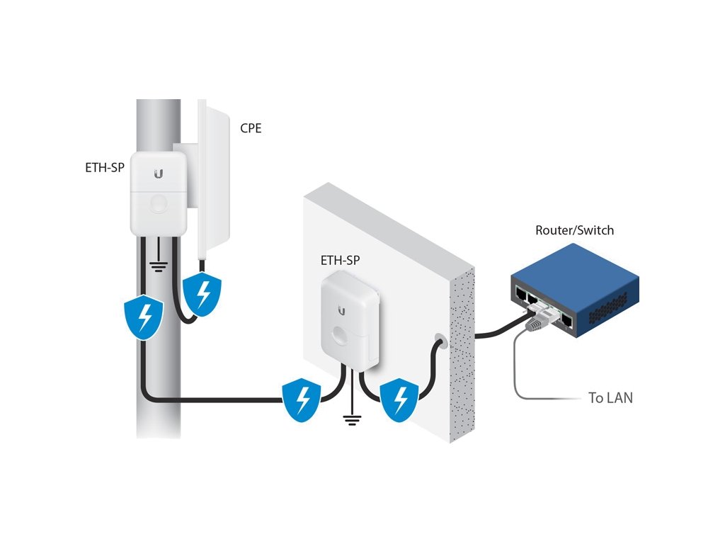 Jedná se o účinnou ochranu zařízení (včetně PoE napájených zařízení) s rychlostí připojení až 1Gbps, které umožní přesměrovat škodlivé elektrostatické výboje a přepětí přímo do ETH-SP a zajistí bezpečné uzemnění.
