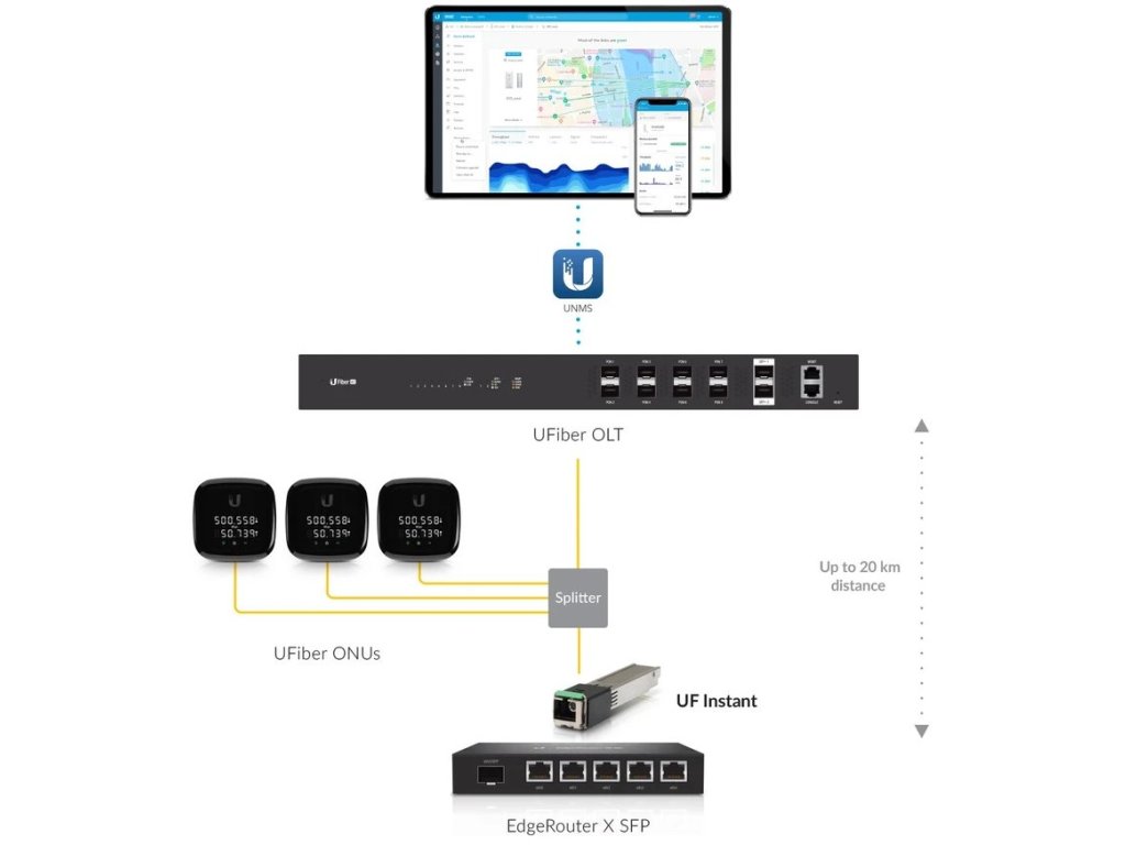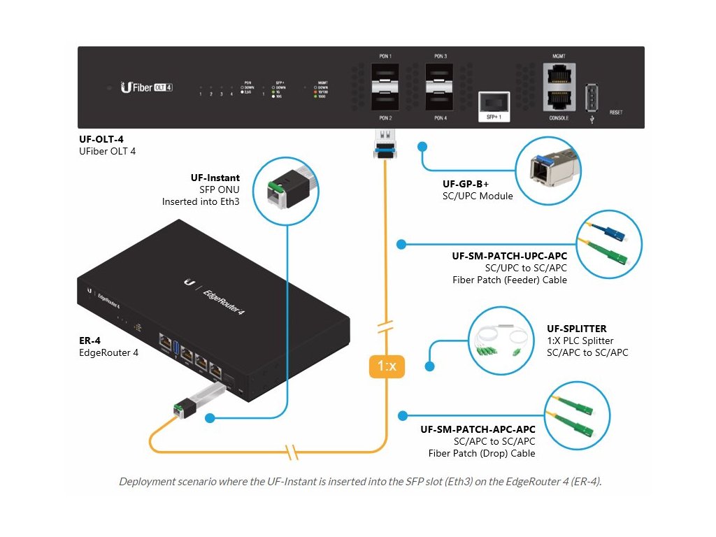 UF-Instant je GPON SFP modul s jedním SC konektorem a je určený do Ubiquiti jednotek řady EdgeSwitch, EdgeRouter, UniFi Switch a USG nebo s produkty UF-AE a F-POE-G2.