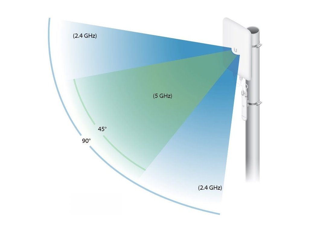 UMA-D je směrová nebo až sektorová dual-band 2x2 MIMO anténa s 90° vyzařovacím úhlem v pásmu 2,4GHz a 45° vyzařovacím úhlem v pásmu 5GHz.