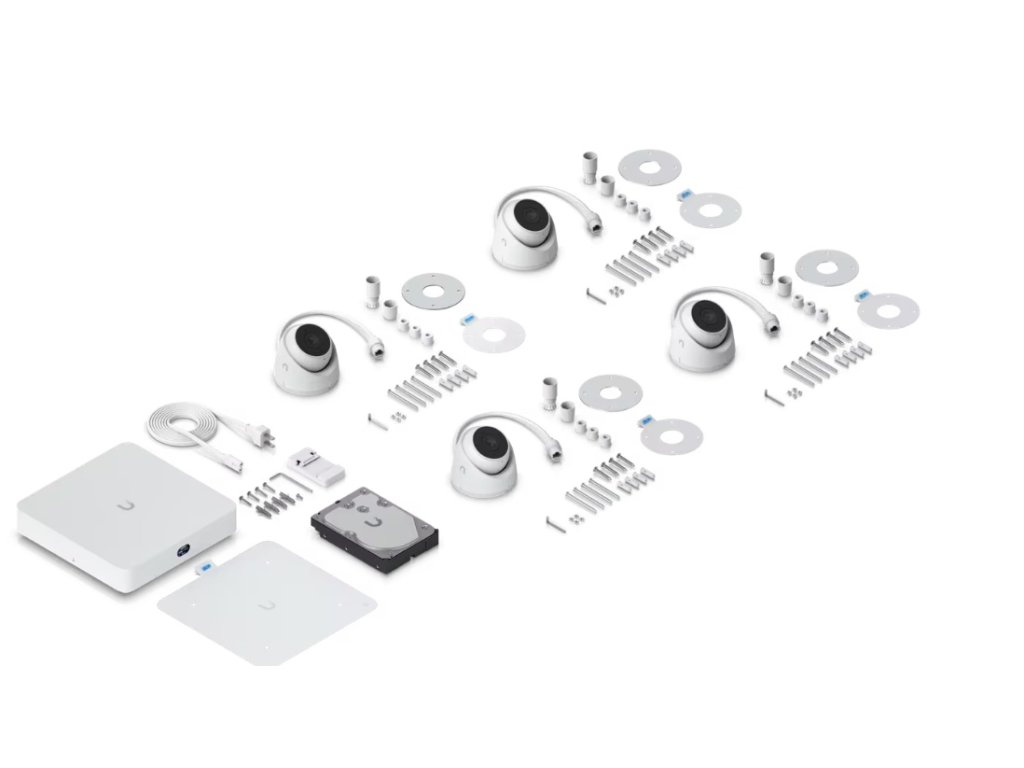 * All-in-one sada obsahující UniFi Protect NVR Instant, čtyři kamery G5 Turret Ultra a 1TB HDD pro okamžitou instalaci.