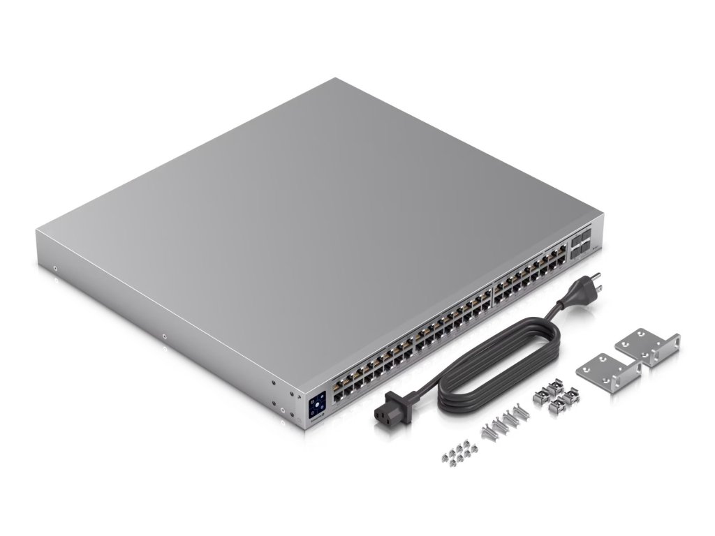 UniFi Switch Enterprise 48 PoE je spolehlivý managovatelný 2,5-Gigabitový L3 Switch s kapacitou přepínání 320Gb/s, (48) 2,5-Gigabit LAN porty a čtyřmi SFP+ (10Gbps) šachtami.