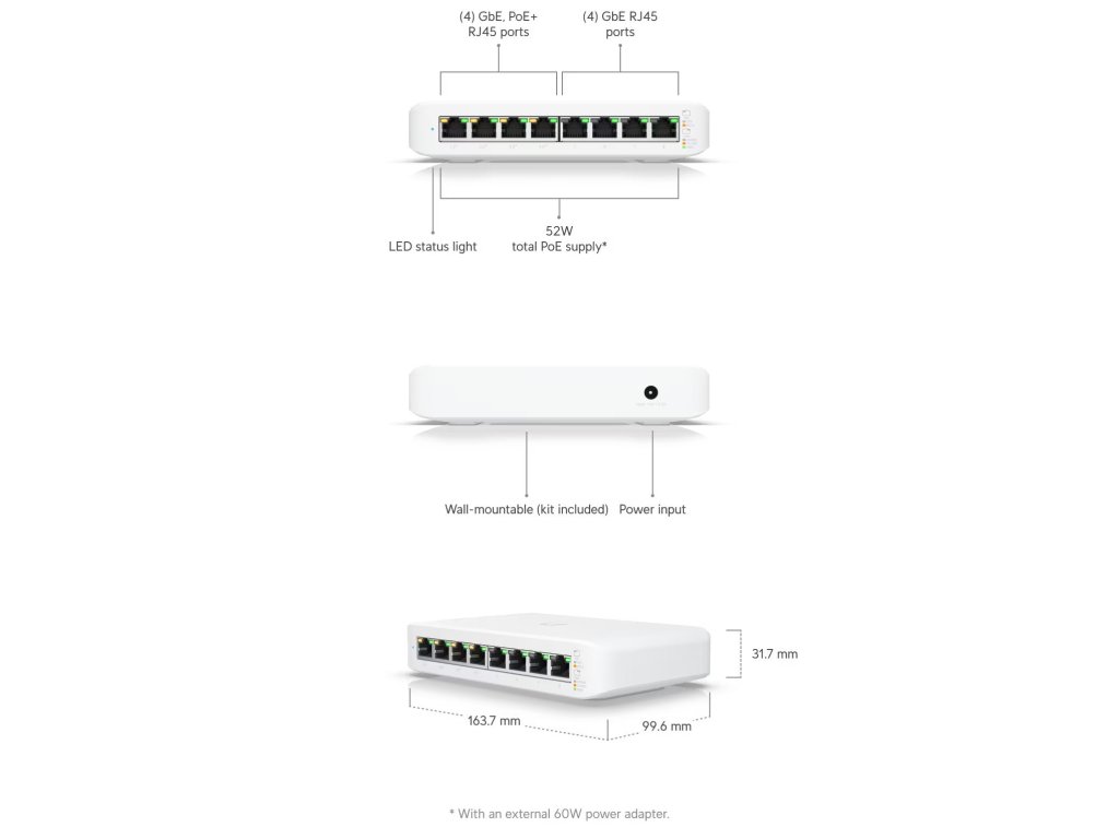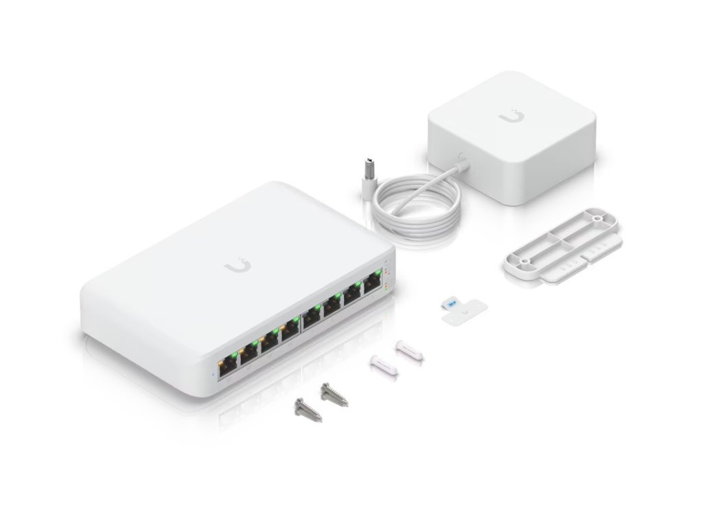 USW-Lite-8-PoE je Gigabitový PoE L2 Switch od Ubiquiti v desktop provedení s maximálním PoE budgetem 52W. Managovatelný switch s 8 Gigabit metalickými porty a celkovou propustnost 16Gb/s.
