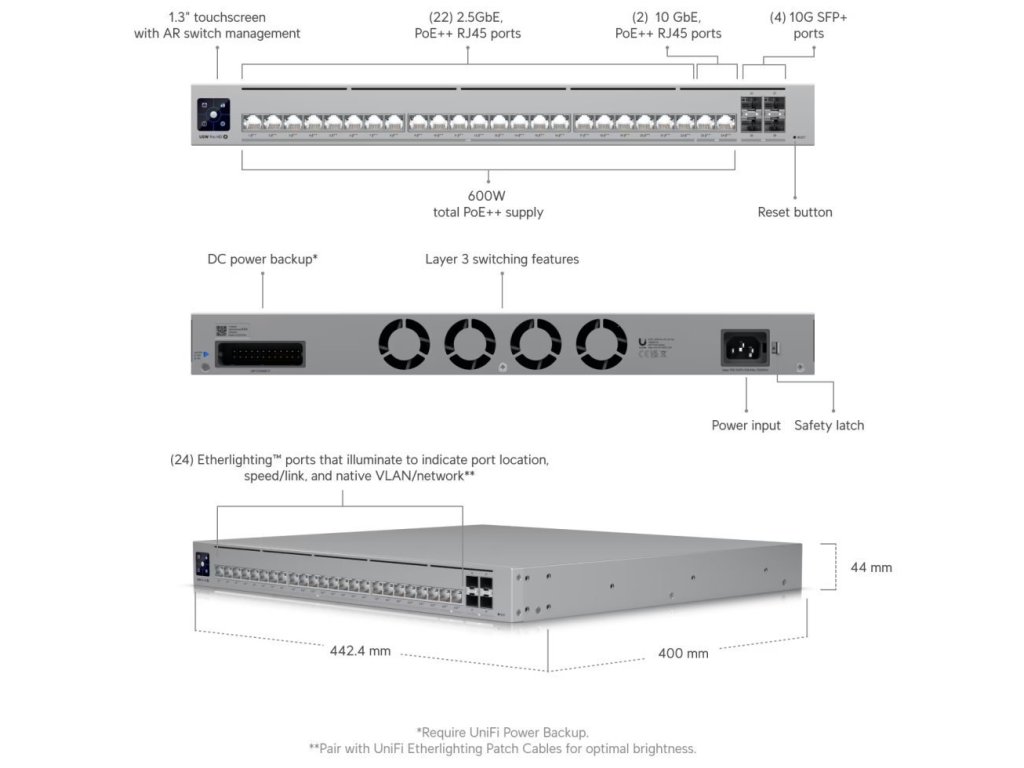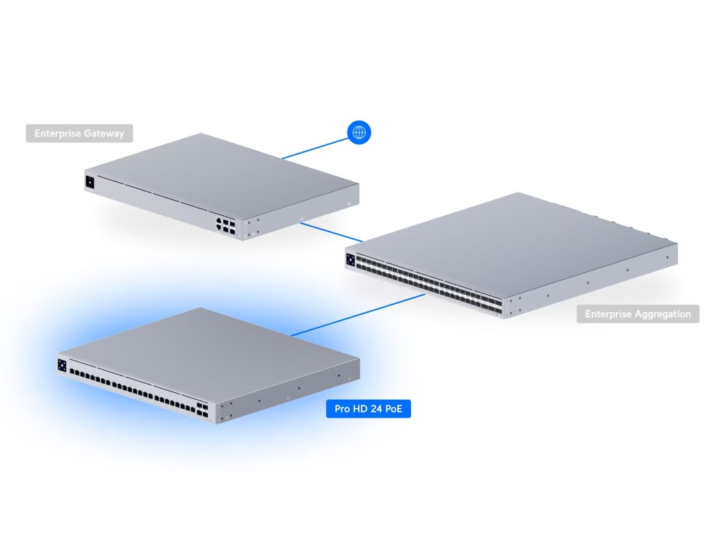 Ubiquiti UniFi Switch Pro HD 24 PoEUniFi Switch (USW-Pro-HD-24) je spolehlivý L3 switch s managementem v profesionálním provedení určený pro montáž do racku 1U.