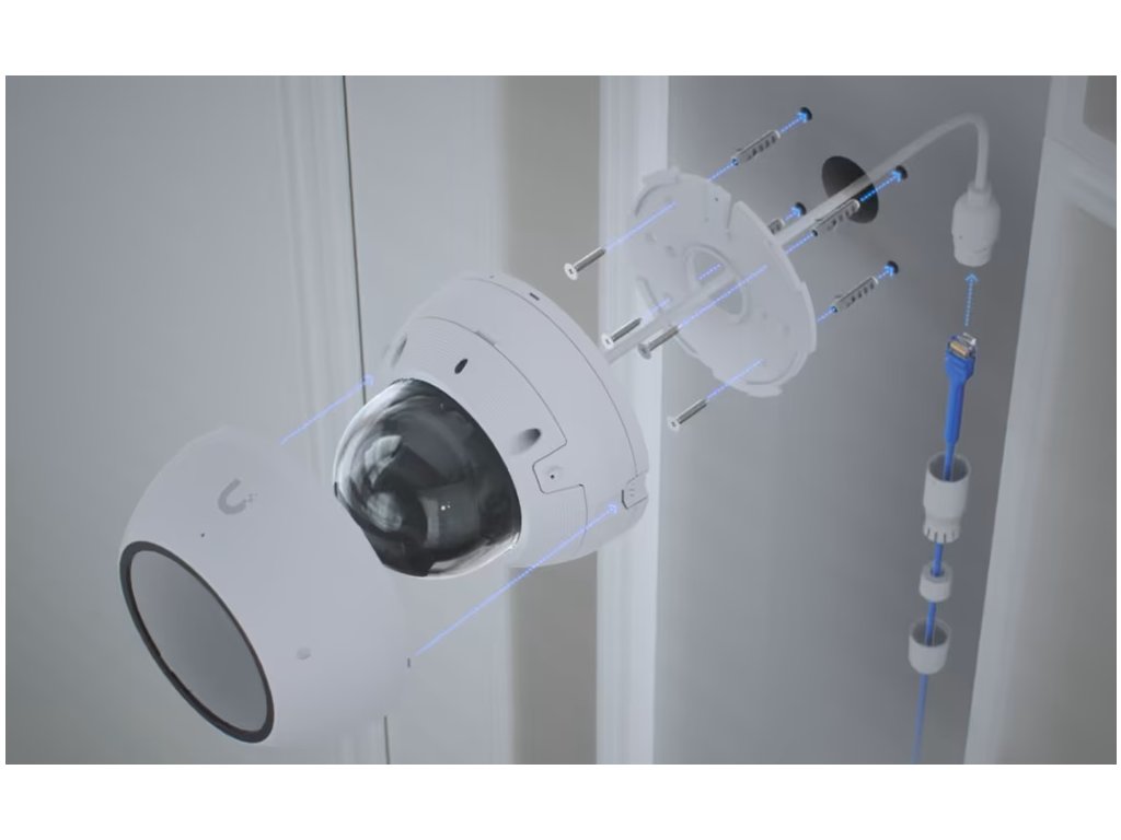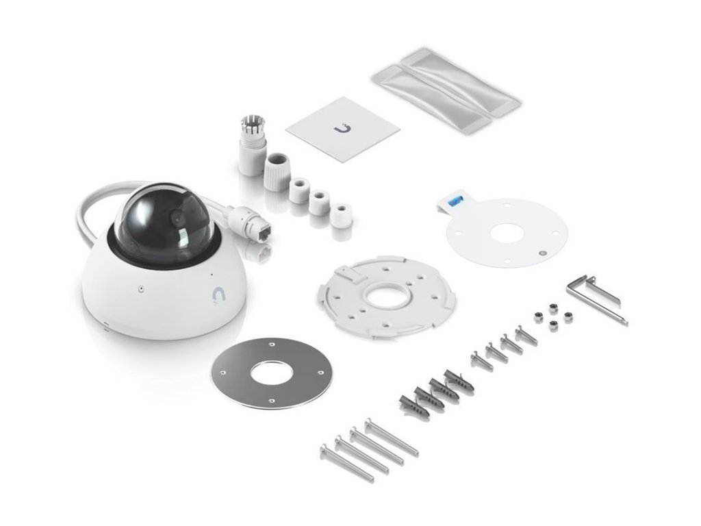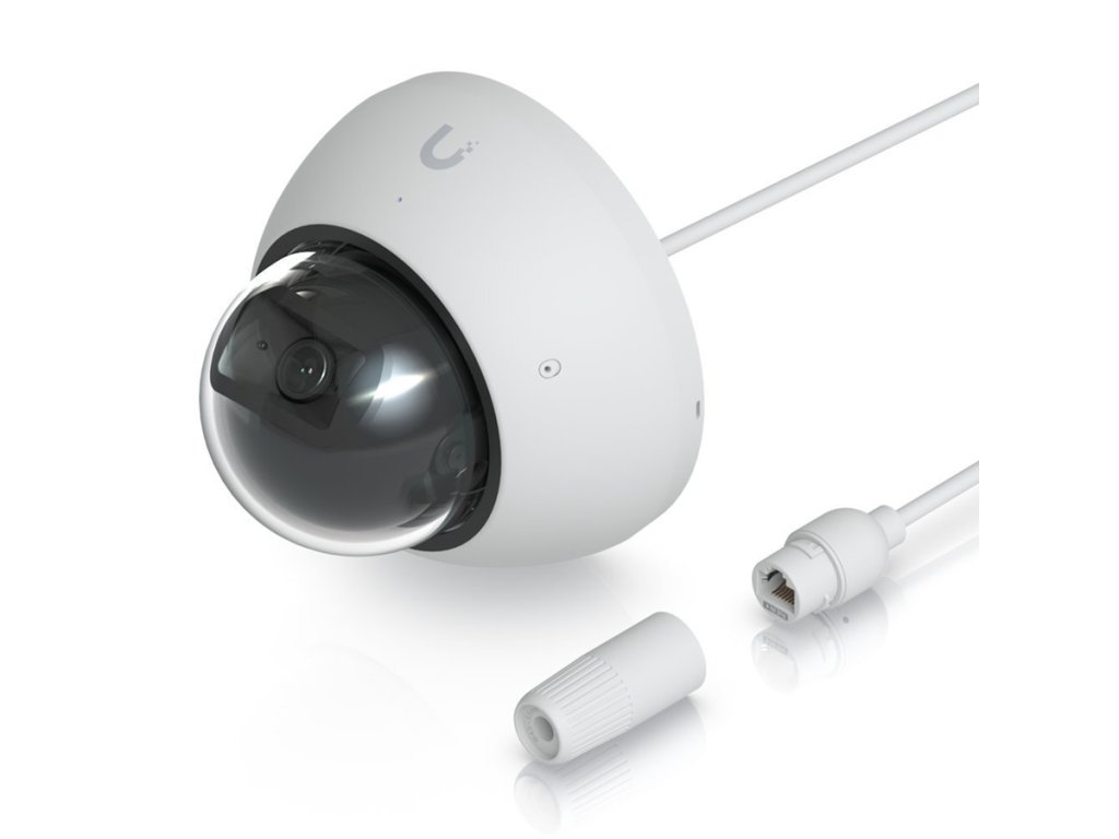 Ubiquiti UniFi AI DomeVenkovní 4K PoE Dome kamera s pokročilou AI pro rozpoznávání osob a registračních značek, s dlouhým dosahem nočního IR vidění a ochranou vůči nepříznivému počasí.
