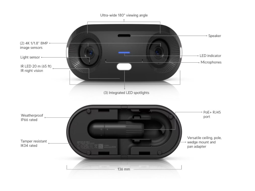 Ubiquiti UVC-G6-180-BDuální panoramatická kamera 16 MP s pokrytím 180° v černém provedení