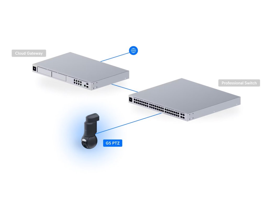 UniFi G6 PTZDvouobjektivová 4K kamera do každého počasí s 10násobným hybridním zoomem, obrazovým snímačem 1/1,8" 8MP, procesorem Multi-TOPS AI a ovládáním otáčení, naklánění a zoomu s ultra nízkou latencí pro sledování pohybu.