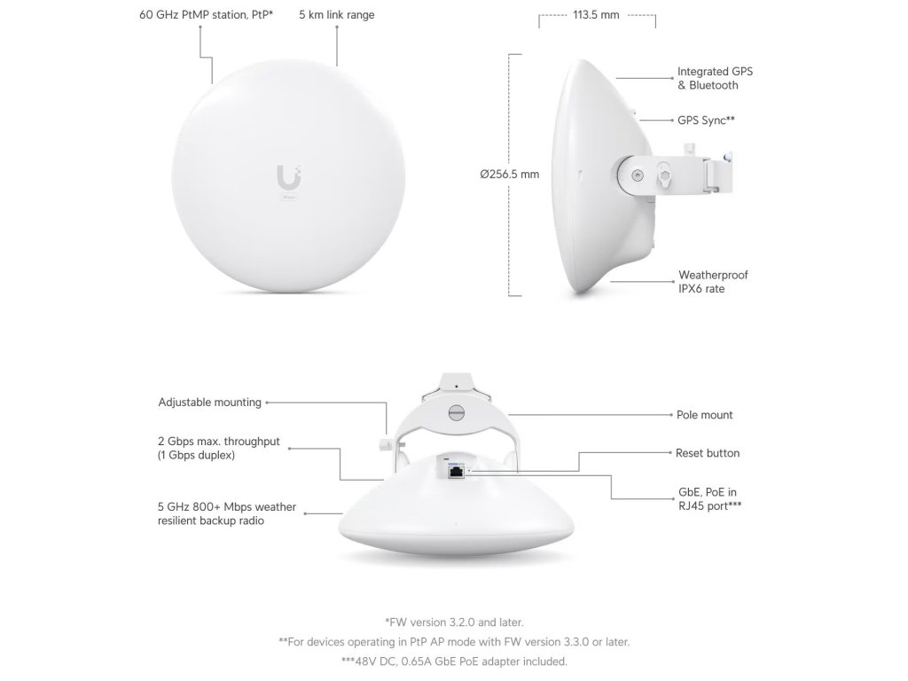 Může se připojit k Wave AP a poskytovat celkovou propustnost 2Gbps (1Gbps duplex). Wave Nano je vybaven vysoce výkonným 5GHz záložním pásmem, které zajišťuje nepřerušované připojení, a Bluetooth pro zjednodušení nastavení prostřednictvím aplikace UISP® Mobile.