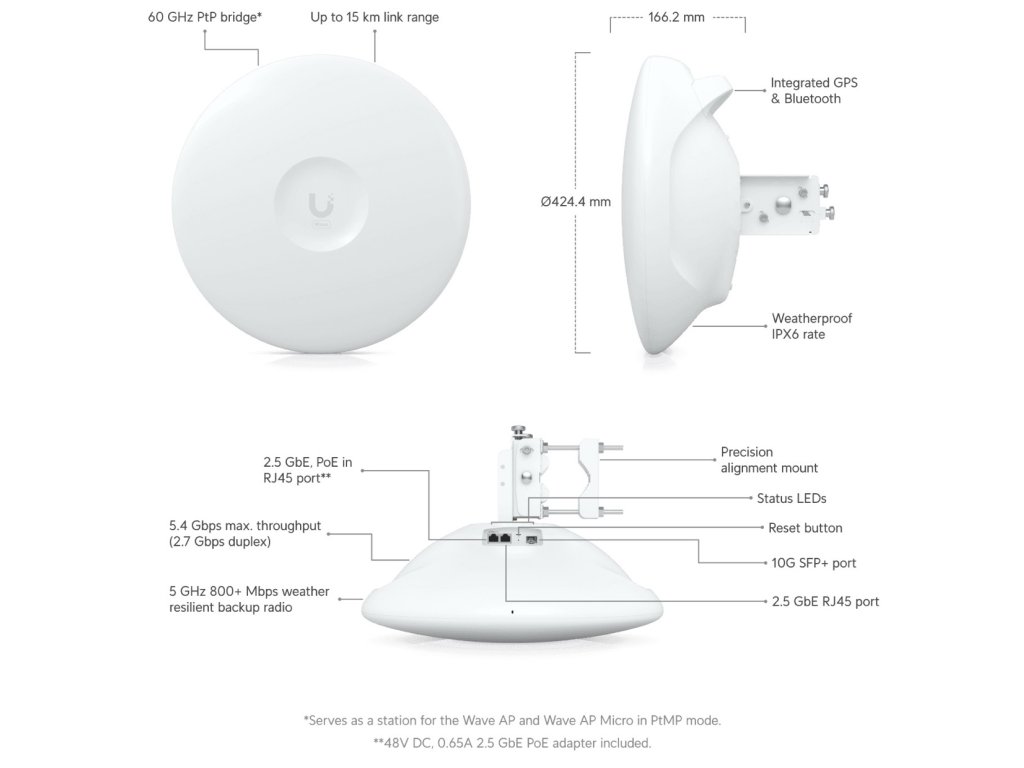 *PtMP: Až 8 km (Wave AP), až 6 km (Wave AP Micro)