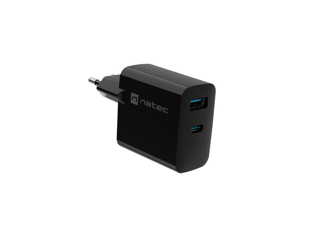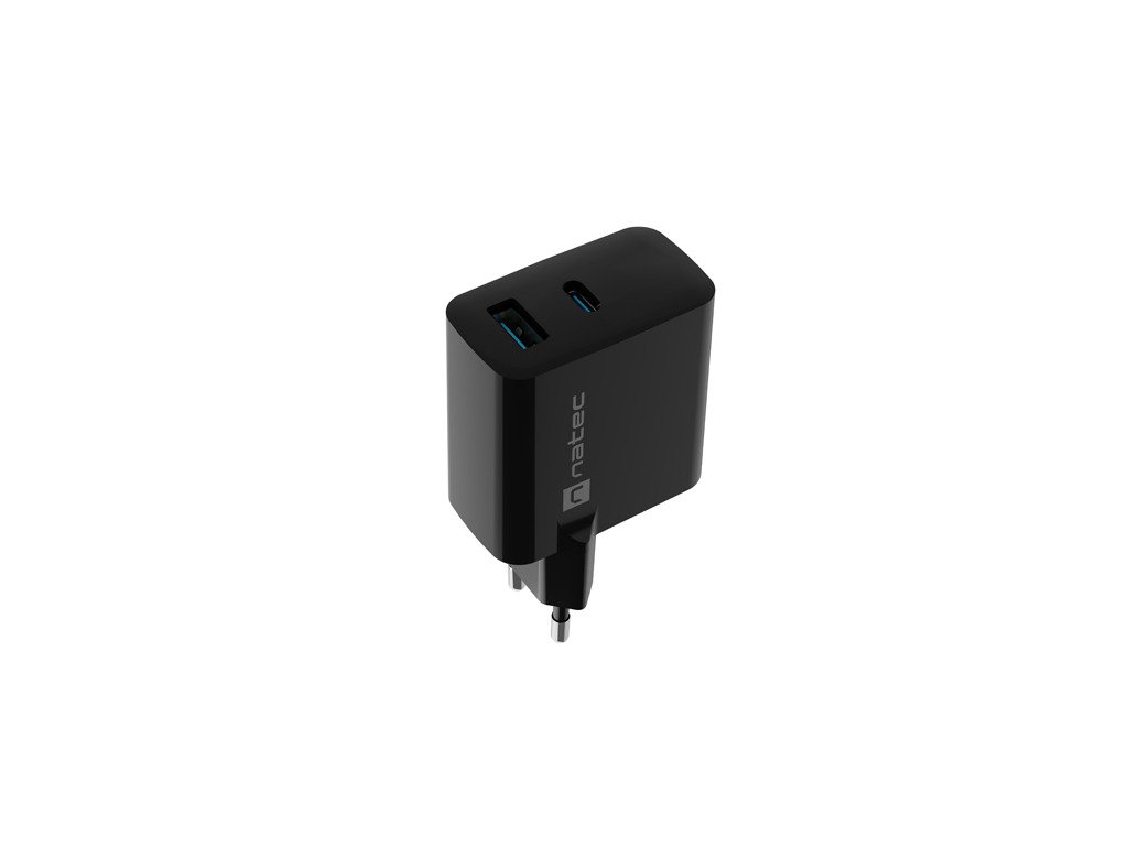 Univerzální USB nabíječka Natec RIBERA GaN 65W, 1X USB-A, 1X USB-C, Černá
