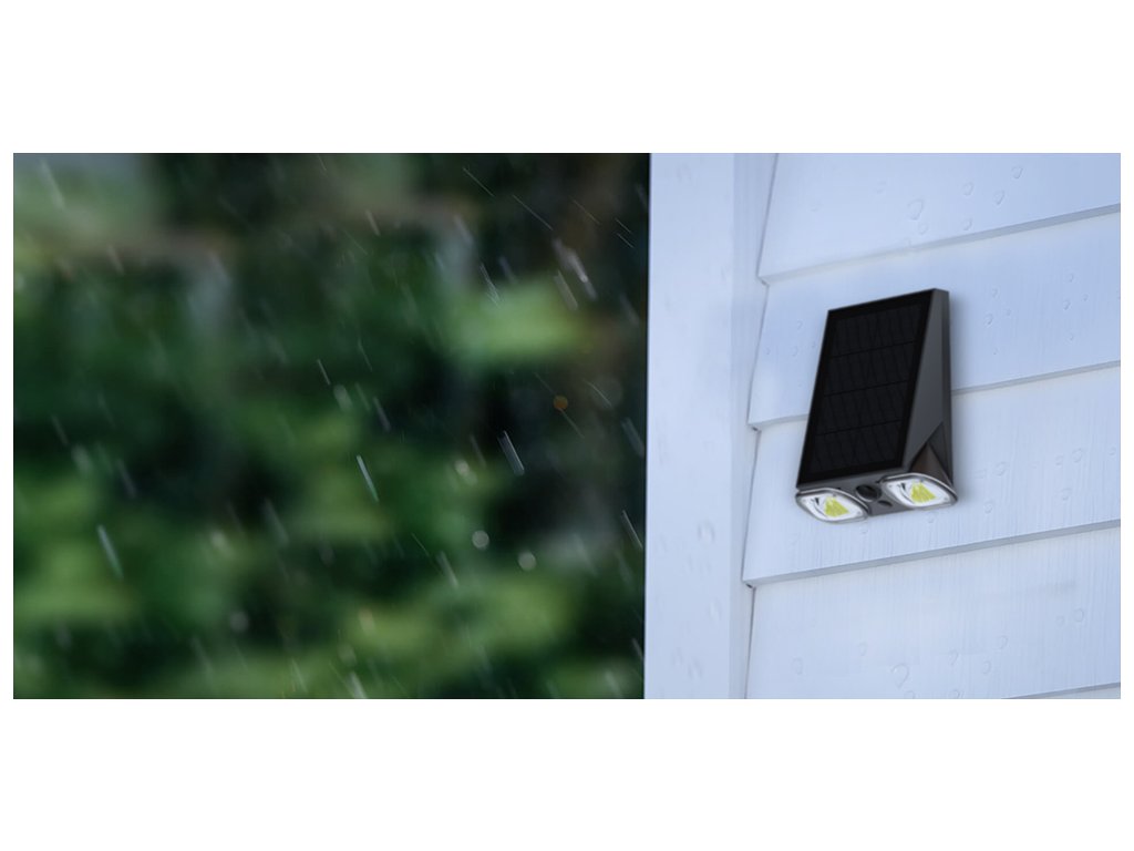 Vybavte svůj domov efektivním a úsporným solárním LED světlem, které je opatřeno pohybovým senzorem. Toto nástěnné světlo poskytuje jasné osvětlení (4000 K) s vysokou barevnou přesností a svítivostí až 800 lm (rozděleno na levé a pravé světlo, obě 400 lm), čímž poskytne světelné pokrytí až 20 m2.