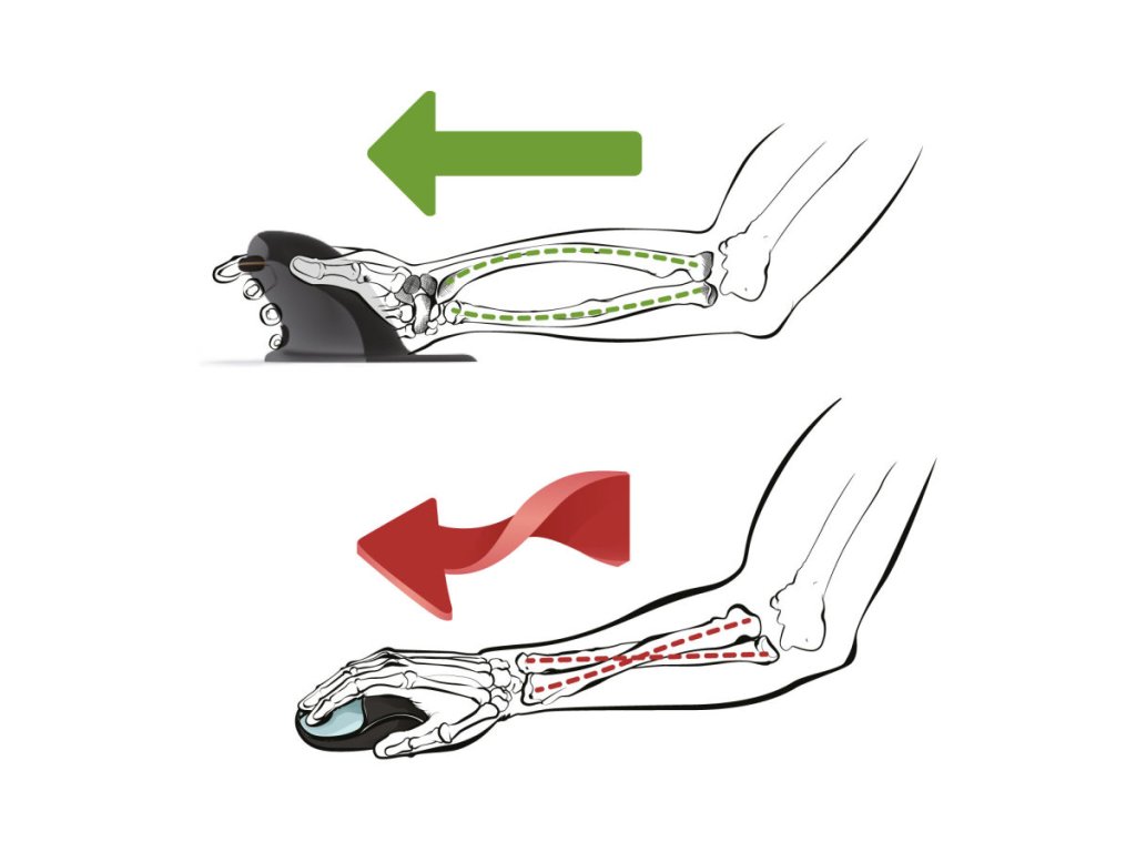 Je známé, že design standardní myši je jedním z hlavních rizikových faktorů bolesti rukou a zápěstí. Bylo zjištěno, že myši, které podporují, aby zápěstí zůstalo v neutrální poloze (například Penguin®), snižují bolesti rukou a zápěstí, a snižují svalovou aktivitu v předloktí.
