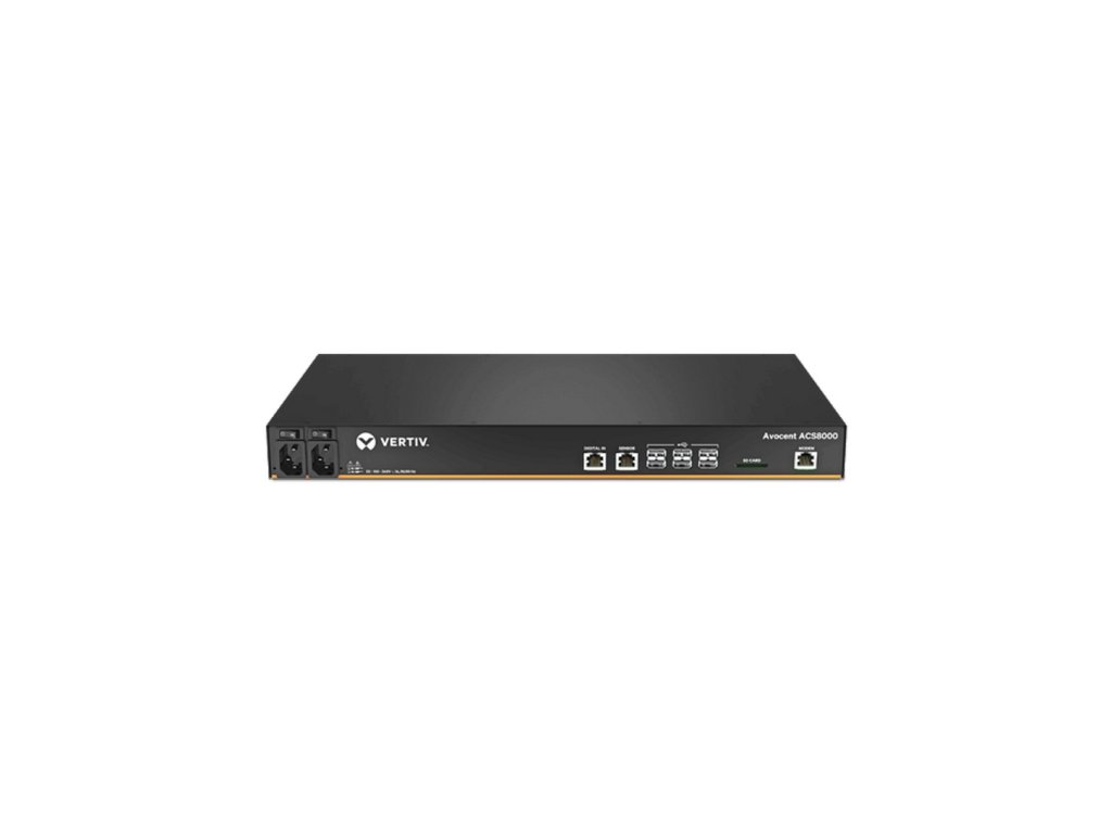 VERTIV ACS8008modely s 8, 16, 32 a 48 porty (modely 2, 4, 8 portů u jednodušší řady ACS 800), zástavbová výška 1U