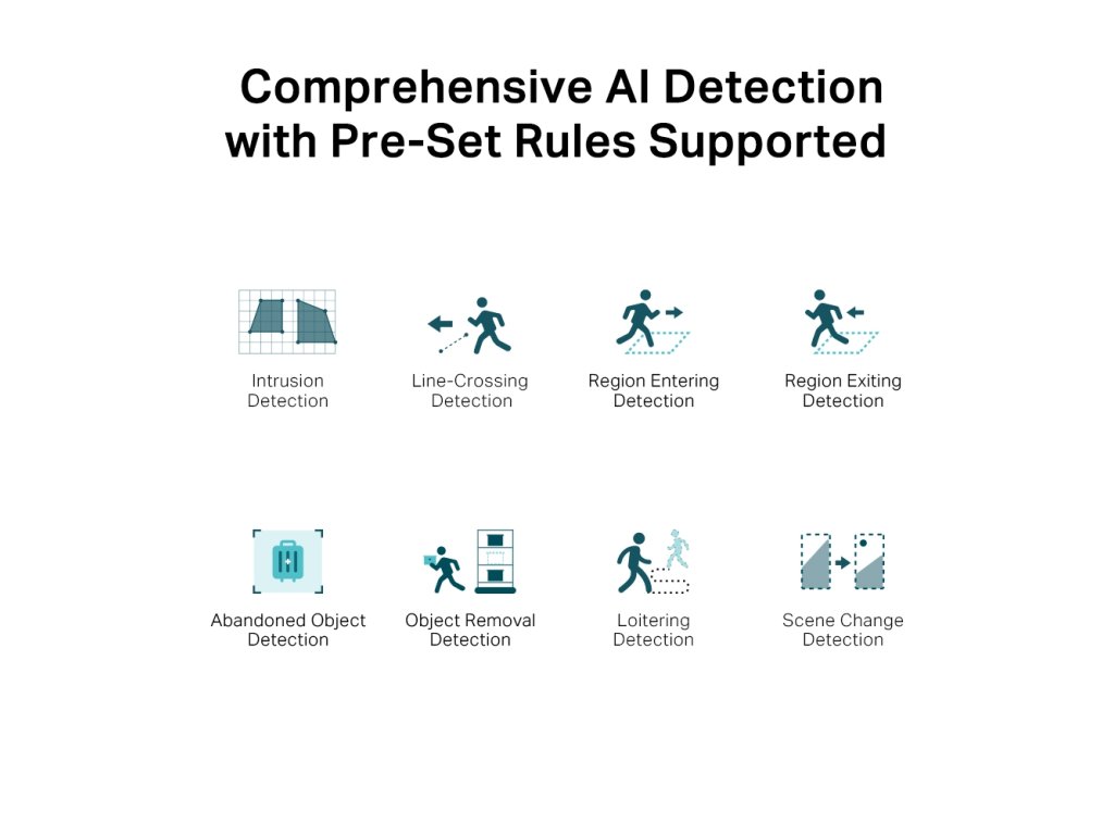 Kamera VIGI s podporou algoritmů umělé inteligence nabízí inteligentnější detekci. Budete dostávat upozornění, když někdo překročí hranici, vstoupí do nastavené oblasti, překáží kameře nebo odstraní/opustí objekty.