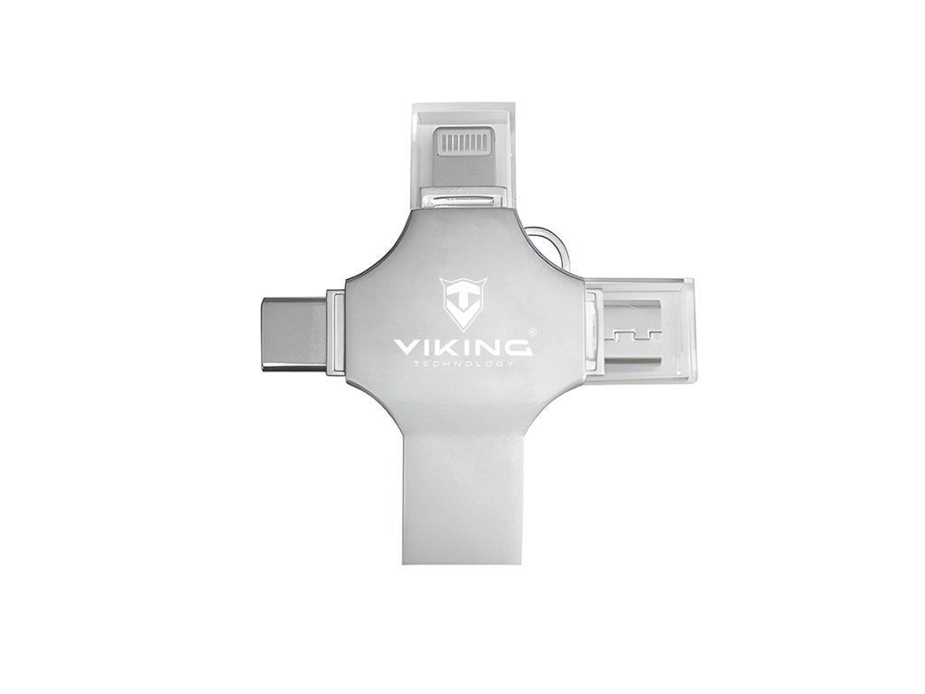 Viking USB flash disk 16GB 4v1 • 4 konektory: USB-A, USB-C, Micro USB, Lightning • Varianta 16 GB • podpora FAT32 a exFAT • vhodný pro iOS, Android, PC i Mac • Kompaktní a lehké provedení • hmotnost 13?gViking USB flash disk 16GB 4v1