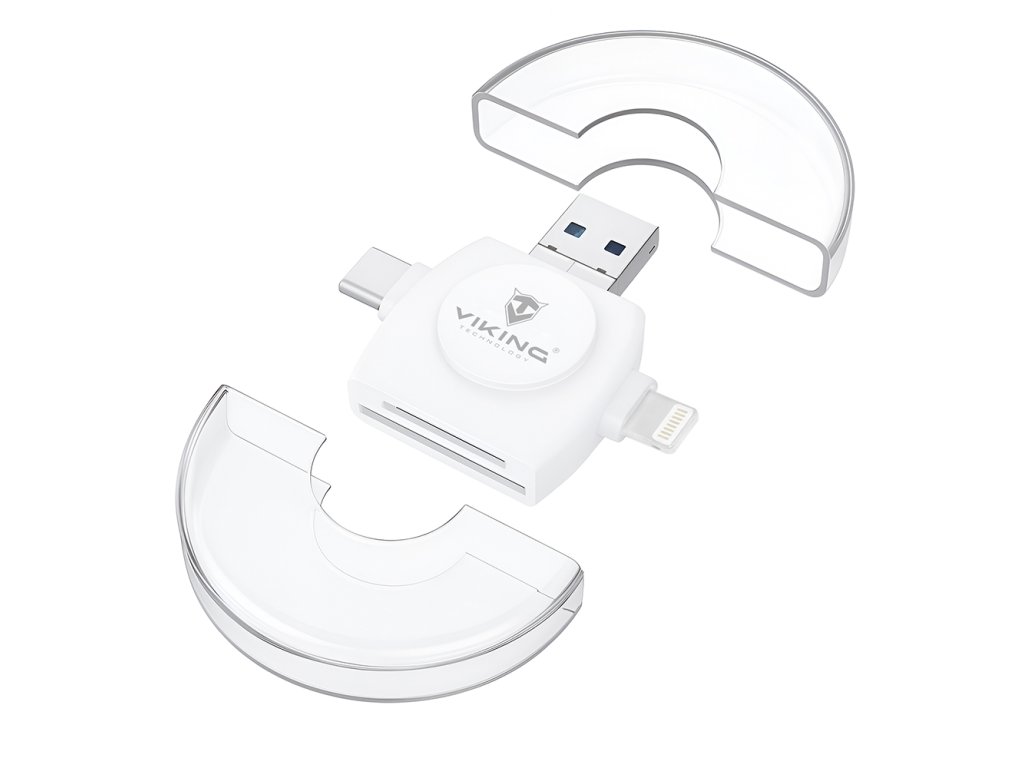 Viking čtečka paměťových karet V4 USB3.0 4v1 je ideálním pomocníkem pro každého, kdo potřebuje rychle a jednoduše přenášet soubory mezi různými zařízeními. Díky čtyřem typům konektorů (Lightning, Micro USB, USB-A 3.0 a USB-C) si skvěle rozumí s mobilními telefony, tablety i počítači. Podporuje OTG, je extrémně kompaktní a navíc ji dostanete v praktickém pouzdře. Ať už potřebujete zálohovat fotky z dovolené nebo přehrát video ve Full HD, tahle čtečka je vždy připravená.