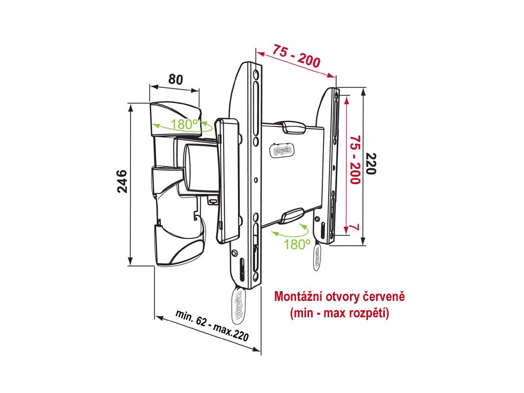 Nástěnné rameno na malé LCDNatočení TV o 90 stupňů na každou stranu umožní ideální pozorovací úhel z libovolného místa