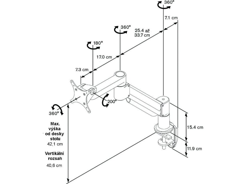 Profesionální držák na menší LCD pro montáž na pracovní stůl, nosnost 1,8 - 6,6 kg* snadné nastavení optimální pozice monitoru konečky prstů