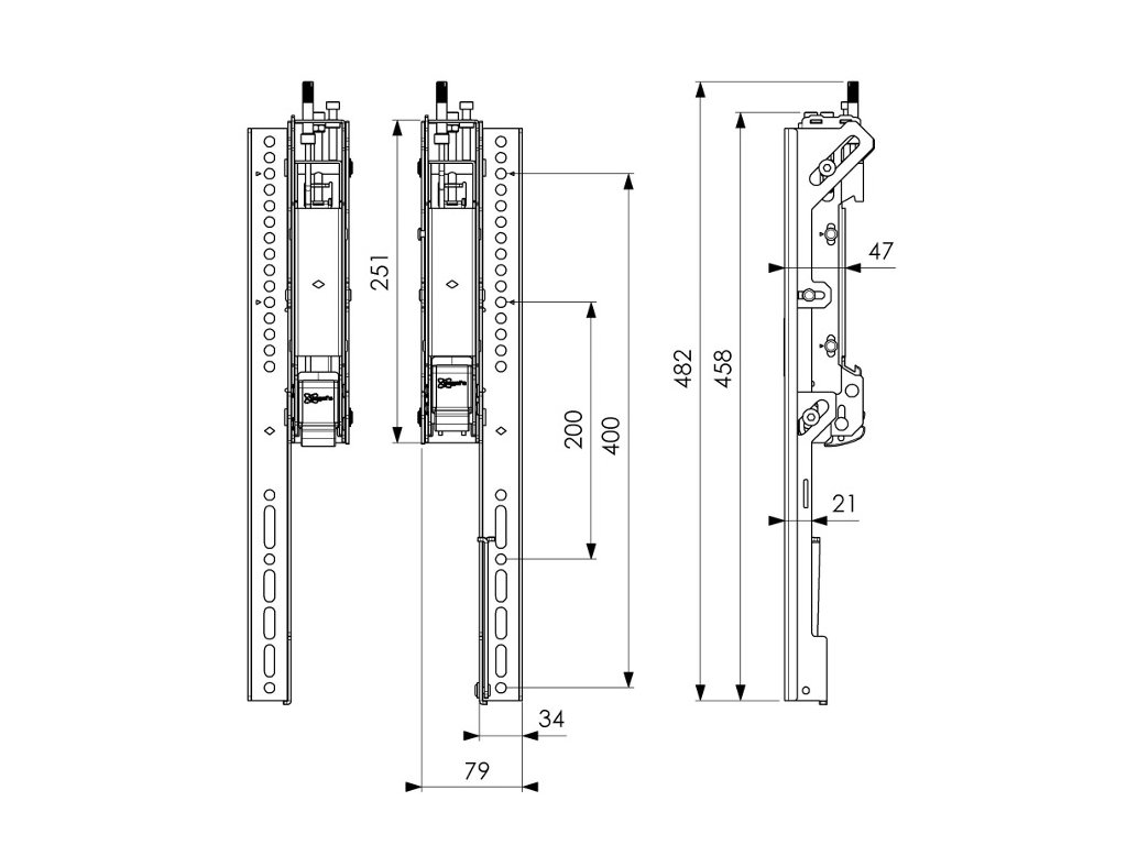 Svislá 3D ramena pro uchycení displeje videostěny na vodorovnou část adaptéru (VESA 400)snadné nastavení v horní části ramene