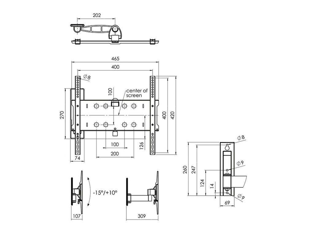 Spolehlivý profesionální držák s jednoduchým ramenem a 2 kloubyDalší vlastnosti: