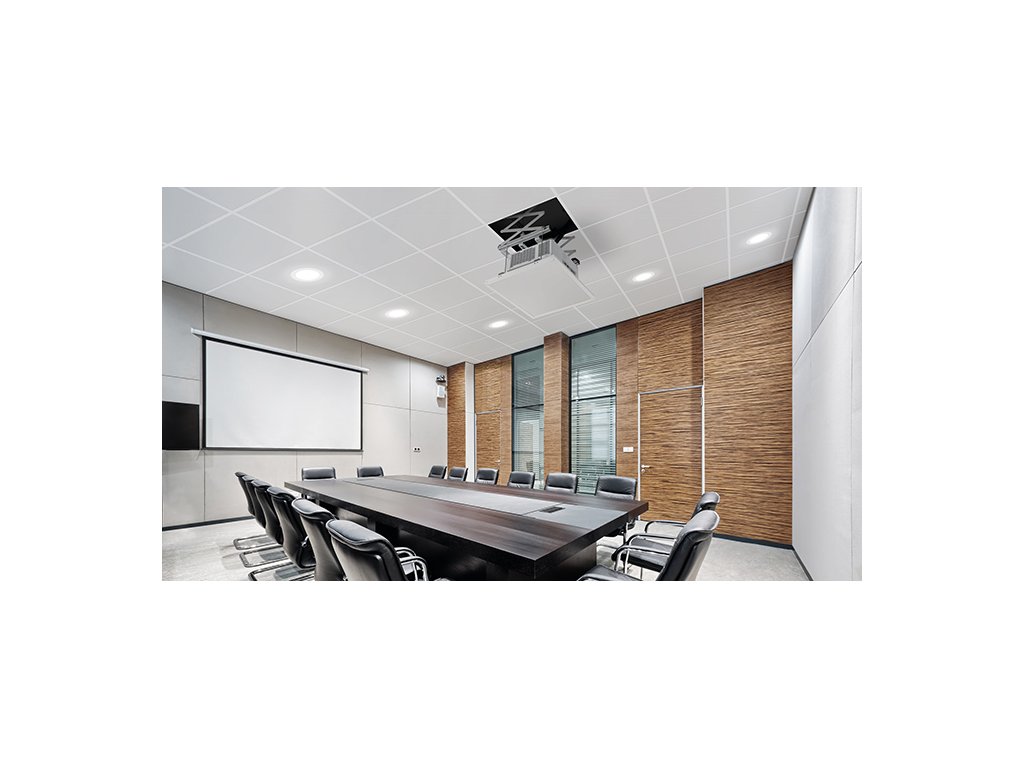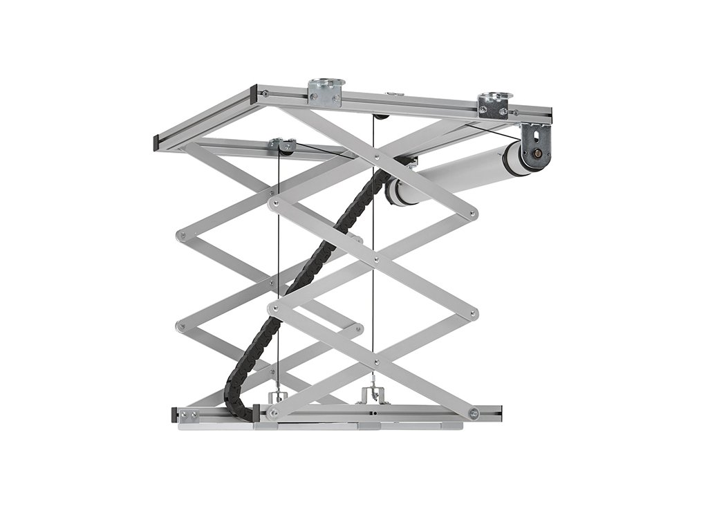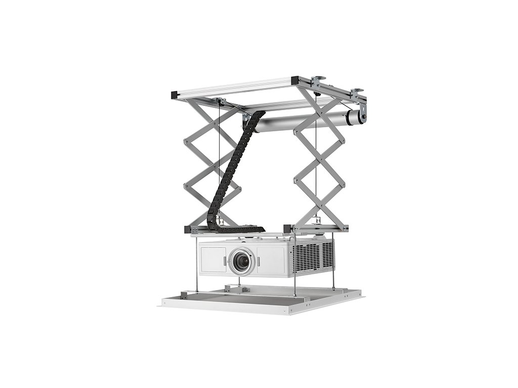 Výtah na projektor PPL2100 je perfektní řešení pro estetickou integraci větších a těžkých projektorů do stropu. Nejen že je projektor pěkně schován, ale je i zároveň lépe chráněn proti krádeži. Výtah pracuje velmi tiše a nabízí dvě nastavitelné pozice - výchozí a promítací.Výtah byl vyvinut pro instalaci do stropních podhledů, které poskytují velmi málo místa. V rámci podhledu je požadováno pouze 15,5 cm minimální výšky k instalaci výtahu a projektoru. Konstrukce umožňuje pokles až o 81,5 cm. Maximální nosnost výtahu je 30 kg.