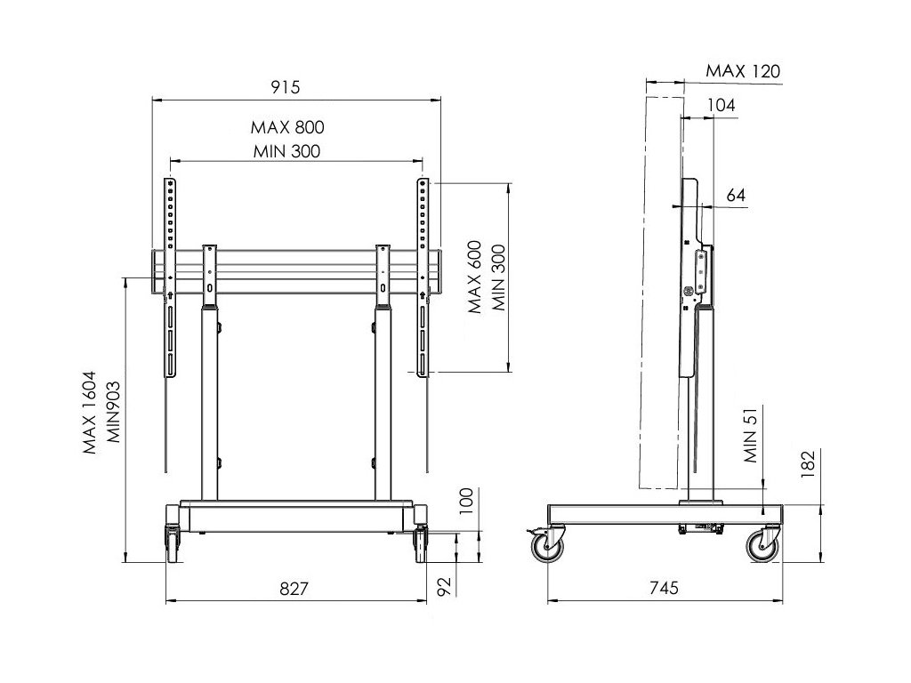 Vogel's RISE 3205 pojízdný podlahový lift 86", dvojitý, 903-1604 mm