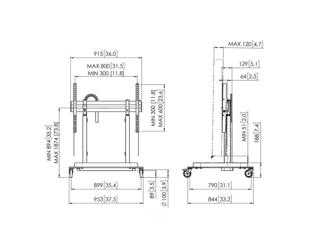 Vogel's RISE 5205 pojízdný podlahový lift 98", dvojitý, 887-1867 mm