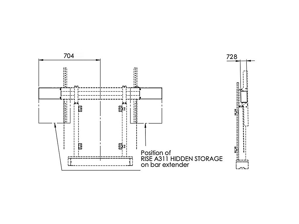 Prodlužovací lišta RISE pro skrytou úložnou jednotkuS prodlužovací lištou RISE A321 si usnadníte instalaci a přístupnost při montáži nástěnného výtahu. Slouží k uchycení úložného prostoru A311 na bok horizontálního adaptéru elektrických liftů RISE. Díky této prodlužovací liště můžete připevnit více skrytých úložných jednotek RISE A311 ke stojanu - z každé strany jednu a další na záda liftu.