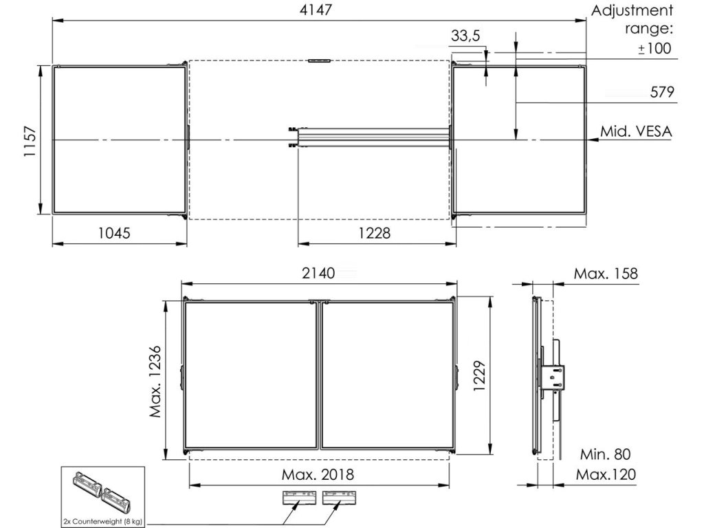 Tabule Vogel's jsou k dispozici pro tři nejběžnější velikosti (interaktivních) obrazovek 65, 75“ a 86“. Díky výškovému a hloubkovému nastavení systému lze tabule bezproblémově přizpůsobit jakémukoli typu (interaktivní) obrazovky.