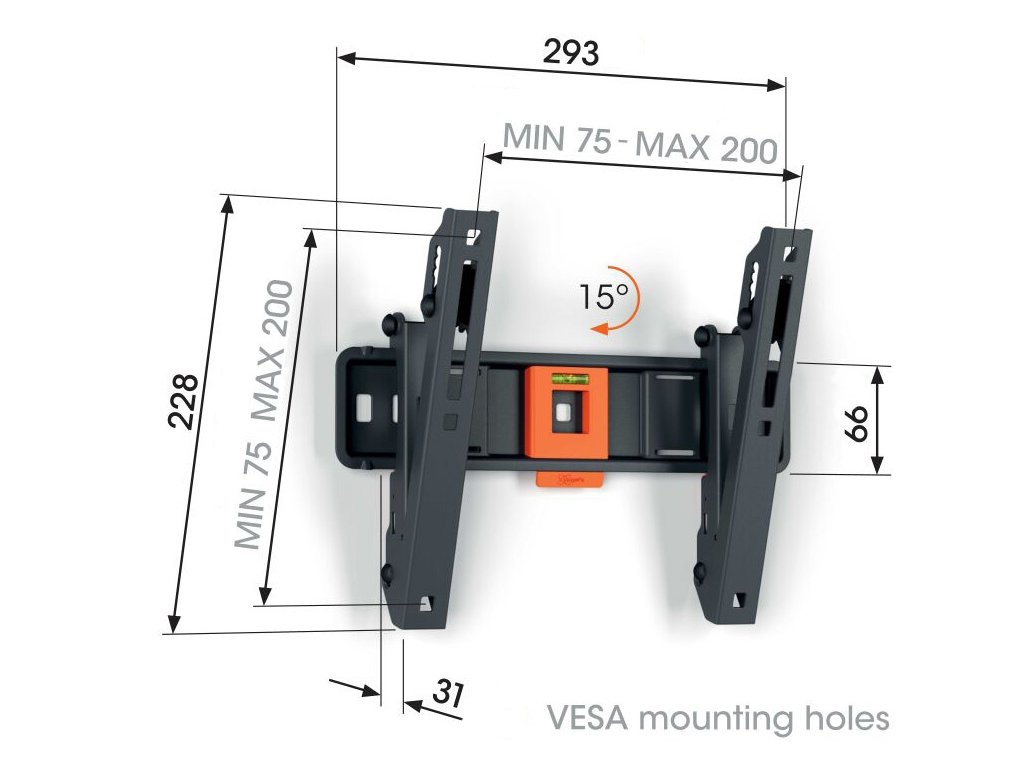 S tímto nástěnným držákem televizoru QUICK Tilt si vybíráte snadnou instalaci a pohodlí během jeho sledování. Instalace je velmi jednoduchá, televizor je na svém místě za pouhých 20 minut. Nakloněním držáku o 5°, 10° nebo 15° snadno nastavíte ideální pozorovací úhel, který je pohodlnější, pokud je TV namontována o něco výše na stěně. Držák je vhodný pro televizory s úhlopříčkou od 19 do 43 palců a hmotností do 15 kg.