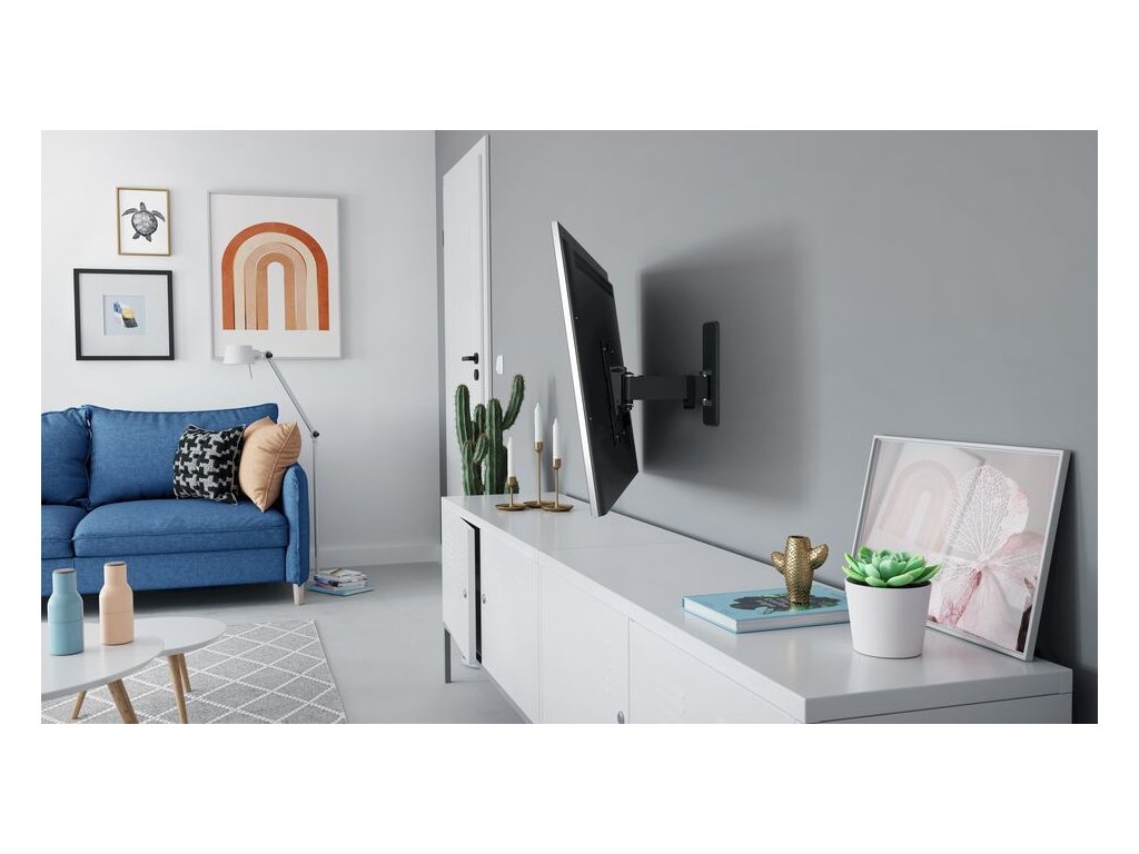 Nástěnný držák televizoru QUICK Full-Motion můžete nainstalovat v pouhých třech krocích díky jedinečnému systému EasyFIX™. To znamená, že váš televizor bude bezpečně namontován na stěnu za maximálně 30 minut. Je váš televizor namontován trochu nakřivo? Žádný problém, i po instalaci jej můžete dokonale narovnat.