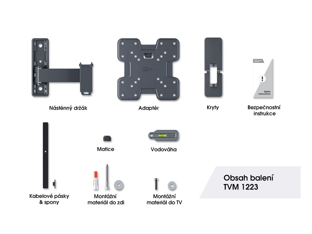 S tímto nástěnným držákem televizoru QUICK Full-Motion si můžete svůj televizor maximálně užít. Nástěnný držák můžete otáčet až o 120° a naklápět až o 15°. Instalace je mimořádně snadná a hotová během chvilky, nezabere to víc než 30 minut. Držák TVM 1223 je vhodný pro TV s úhlopříčkou od 19 do 43 palců a hmotností do 15 kg.