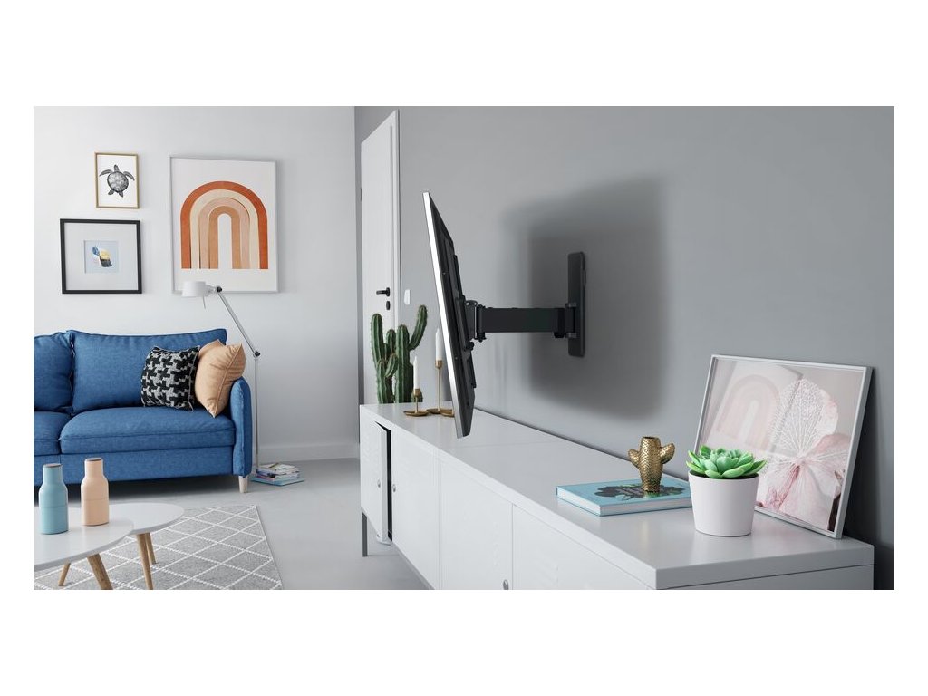 S tímto nástěnným držákem televizoru QUICK Full-Motion můžete televizor sledovat pohodlně, ať jste kdekoli v místnosti. Držák se může otáčet až o 120° a naklánět až o 15°. Instalace je velmi snadná. Televizor můžete pěkně a bezpečně připevnit na stěnu v max. 30 minut. TVM 1623 je vhodný pro televizory s úhlopříčkou 40 až 77 palců a hmotností do 35 kg.