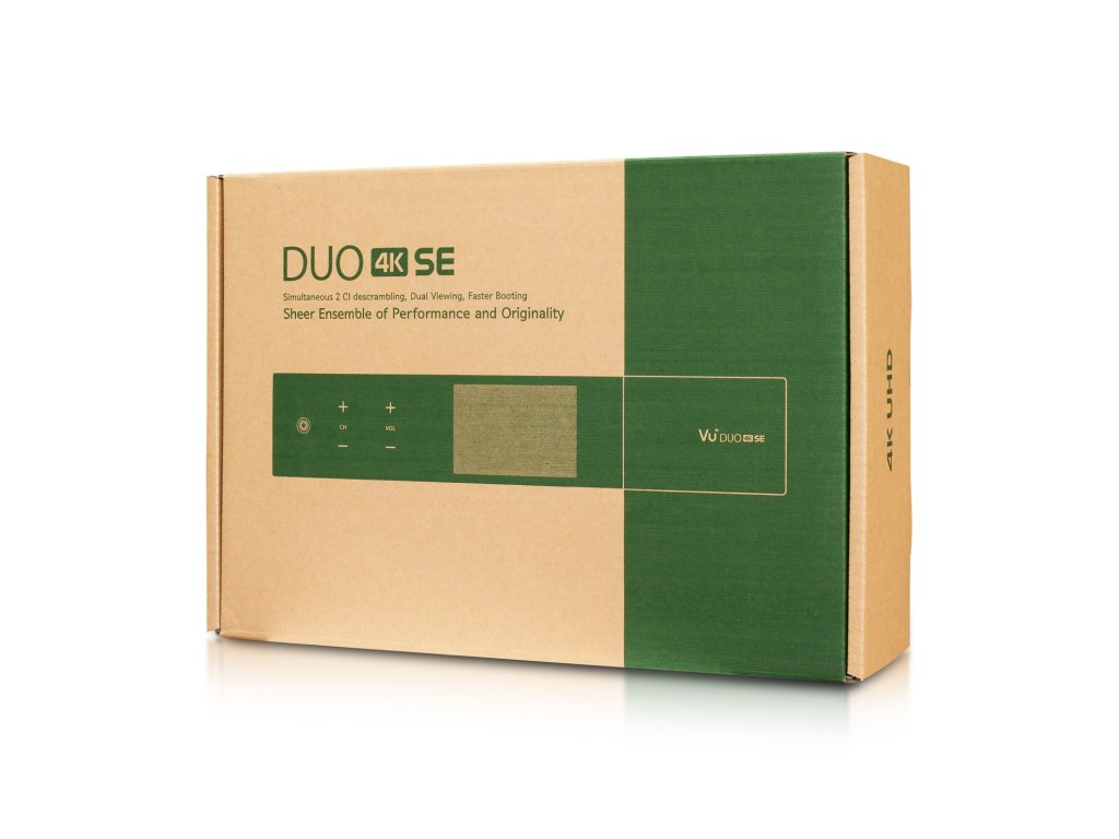 Vu+ DUO 4K SE vo verzii s duálnym satelitným DVB-S2X tunerom (2x satelitný DVB-S2X + 6x virtuálny tuner). Vu+ DUO 4K SE je 4K prijímača s UHD rozlíšením 2180p a s najnovšími obrazovými normami pre 4K - HDR10 a HLG. Predný panel je vybavený farebným LCD displejom vo veľkosti 3,5" palca s funkciou Mini TV a dotykovými tlačidlami ovládania hlasitosti a prepínania programov. Ďalej obsahuje zabudovanú čítačku kariet a dva CI sloty pre vloženie prístupového dekódovacieho modulu. Prijímač využíva najvýkonnejší štvorjadrový procesor v modeloch Vu+ s frekvenciou 1,5 GHz doplnený o operačnú pamäť 3GB LPDDR4 a flash pamäť 4GB eMMC. Pre nahrávanie máte možnosť vloženia pevného disku 2,5" s max. kapacitou do 4TB vo výmeniteľnom šuflíku, ktorý sa nachádza na zadnej strane prijímača. Možnosť osadenia až dvoch vymeniteľných FBC tunerov (slot A - osadený satelitným FBC tunerom, slot B - voľný slot pre další FBC tuner). Pre pripojenie k internetovej sieti má prijímač zabudovaný gigabitový ethernet, taktiež je možné ho pripojiť k internetu pomocou zabudovanej WiFi. Prijímač disponuje aj zabudovaným Bluetooth adaptérom, ktorého využitie je na Bluetooth diaľkové ovládanie alebo pripojenie Bluetooth Audio zariadenia. Okrem HDMI 2.0 výstupu má prijímač aj HDMI IN konektor pre pripojenie externého zariadenia s HDMI pripojením (XBOX ONE, PS4, DVD a pod.). K pripojeniu USB komponentov má Vu+ DUO 4K SE zabudované dva vysokorýchlostné USB porty 3.0 a jeden 2.0 USB port. Podpora pre obraz v obraze - QUAD PIP.Špecifikácia: